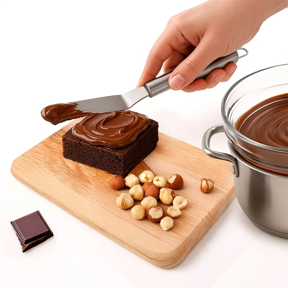 • Stabilitás és kontroll – masszív rozsdamentes penge az egyenletes kenéshez, a piskóták szakítása nélkül.