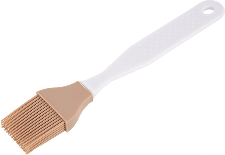 Az ecset feje strapabíró, bézs színű szilikonból, a nyele erős, fehér műanyagból készült, nyílással a felakasztáshoz. Az anyag szagtalan, nem szívja fel a folyadékot, és könnyen tisztítható – elég leöblíteni vagy mosogatógépbe tenni.