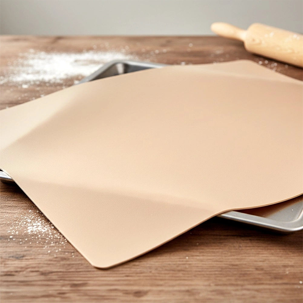 Tartós szilikonból, elegáns bézs színben, amely a -40 °C-tól +220 °C-ig terjedő szélsőséges hőmérsékleteket is bírja. Használható nyújtóalátétként és sütőlap-betétként is. Élelmiszer-biztonságos, könnyen tisztán tartható és mosogatógépben mosható.