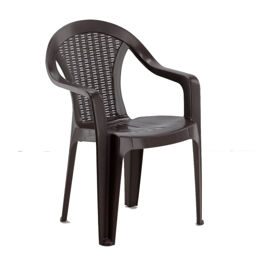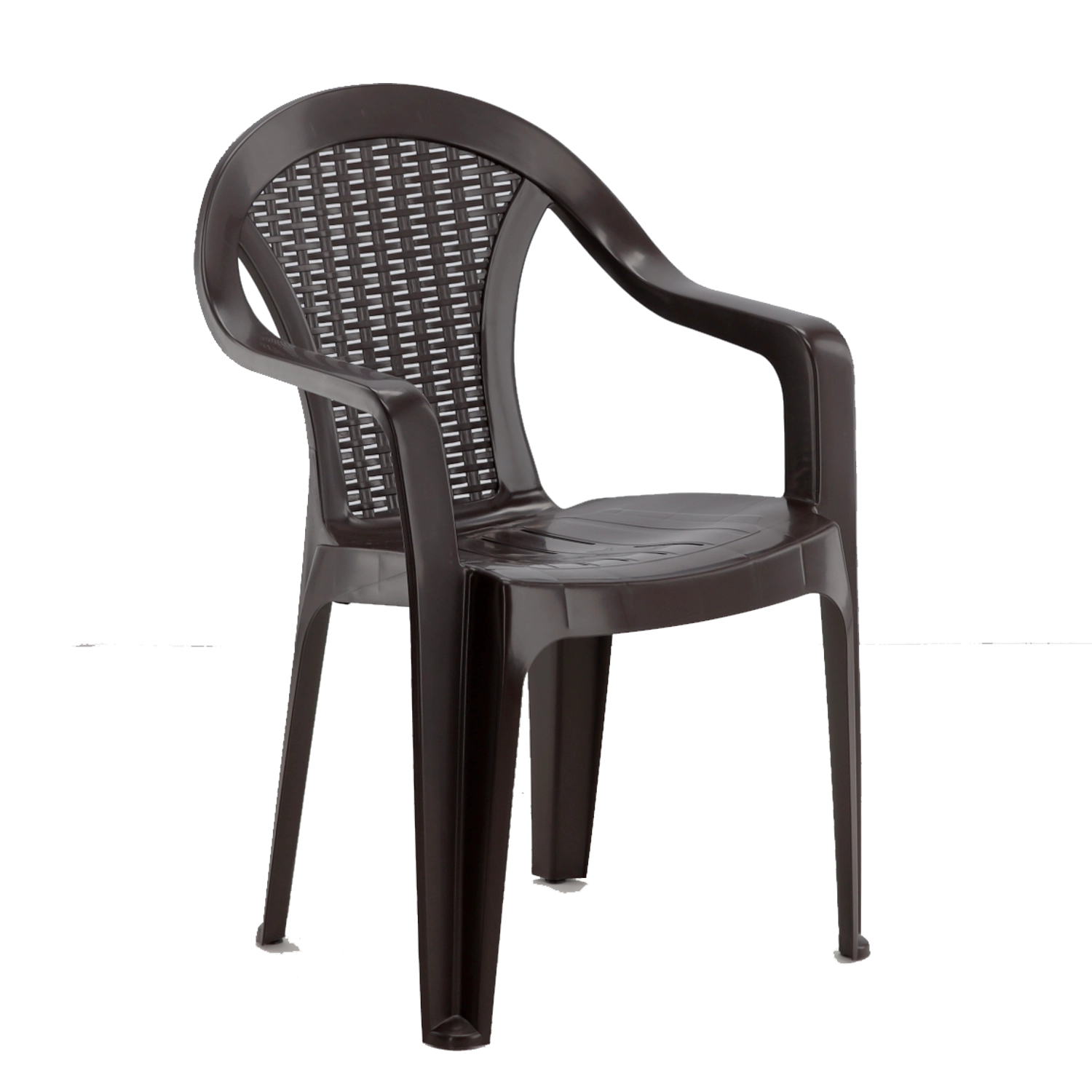 Praktikus, barna színű, tartós műanyagból készült kerti szék, mely az integrált karfáknak és ergonomikus kialakításnak köszönhetően kényelmes ülést biztosít. Könnyű, stabil és könnyen tisztítható, ezért ideális teraszra, erkélyre és kertbe. A szellőző, rattan hatású támla kellemes ülést nyújt meleg napokon is, a szék pedig ellenáll az időjárás viszontagságainak egész szezonban.
