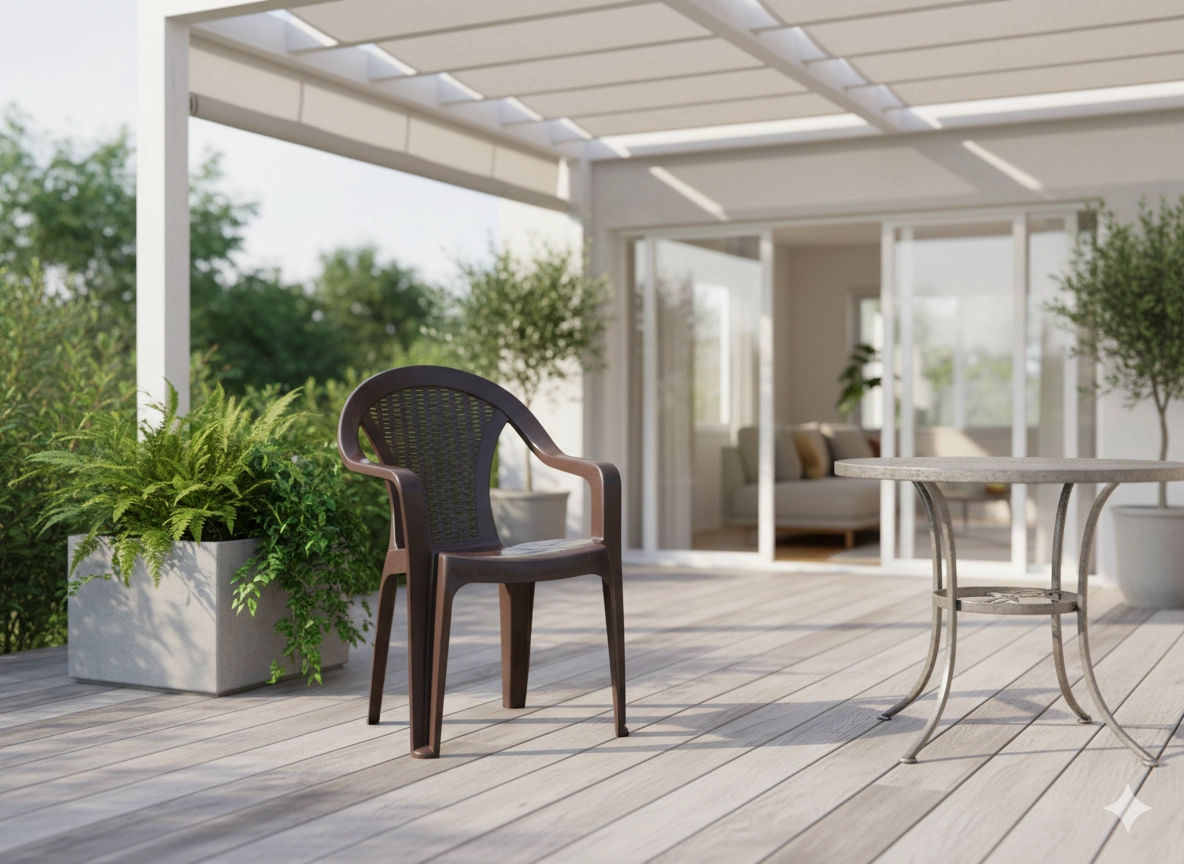Alakítson ki otthonos ülőhelyet a kertben, a teraszon vagy az erkélyen. Ez a barna műanyag szék a klasszikus dizájnt strapabíró anyagokkal és mindennapi kényelemmel ötvözi. A masszív, négy lábú szerkezetnek köszönhetően stabil, mégis könnyű és egyszerűen mozgatható.