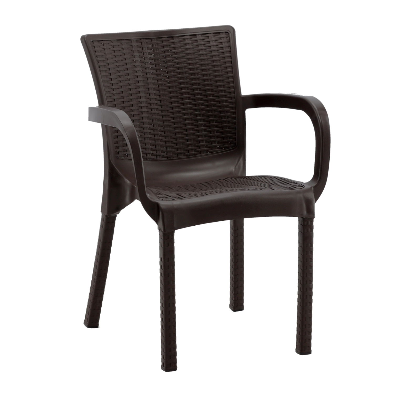 Vigyen kényelmet és stílust teraszára, erkélyére vagy kertjébe. Ez a barna, rattan hatású kerti fotel strapabíró műanyag kivitelben készül, kényelmes kartámasszal és könnyű karbantarthatósággal. Remekül illik kültéri asztalhoz, és az univerzális színének köszönhetően könnyen összehangolható más bútorokkal.