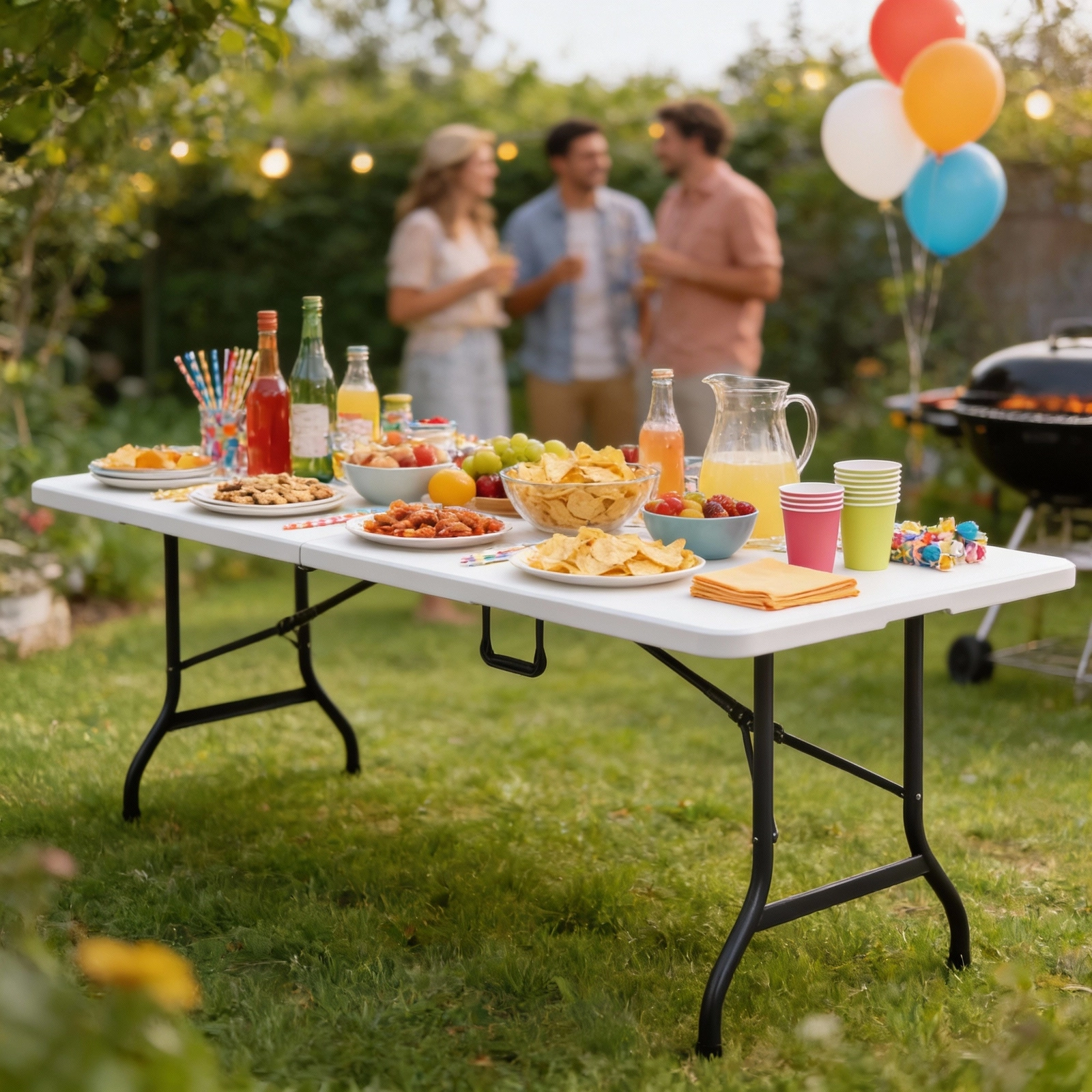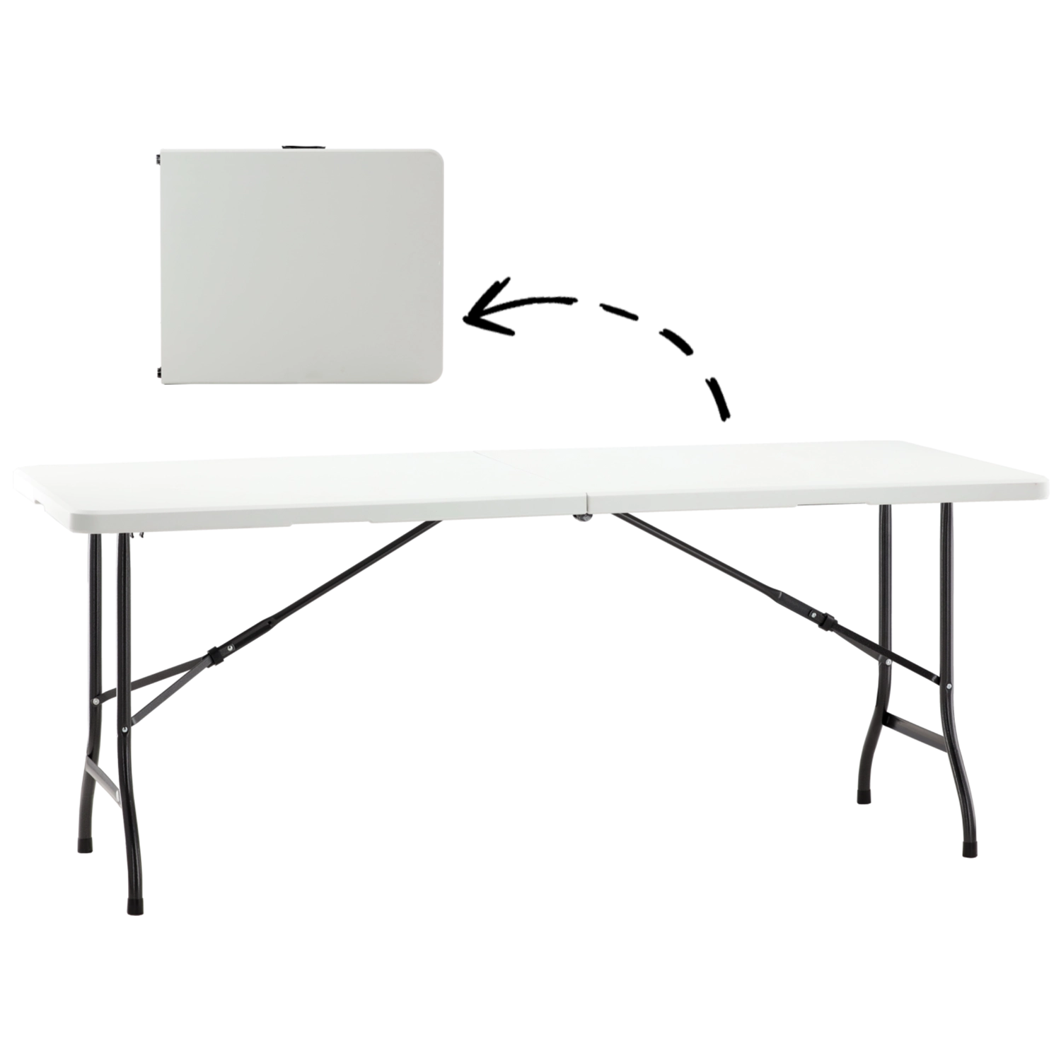 A 180 cm hossz és a 75 cm szélesség bőséges helyet kínál vendégeknek, frissítőknek és felszerelésnek – ideális bankettekre, kerti bulikra vagy vásárokra.