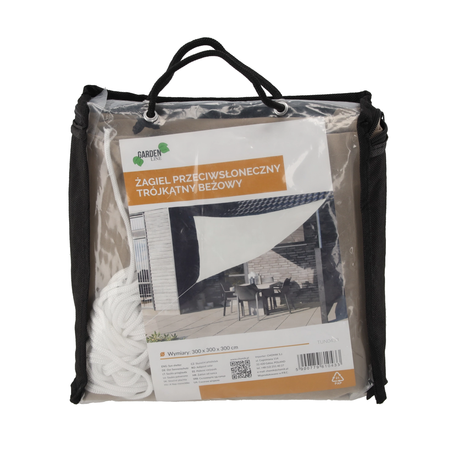 A csomag tartalmaz 3 rögzítőkötélzetet. A vitorla könnyen kifeszíthető és az adott térhez igazítható az azonnali árnyékolás érdekében.