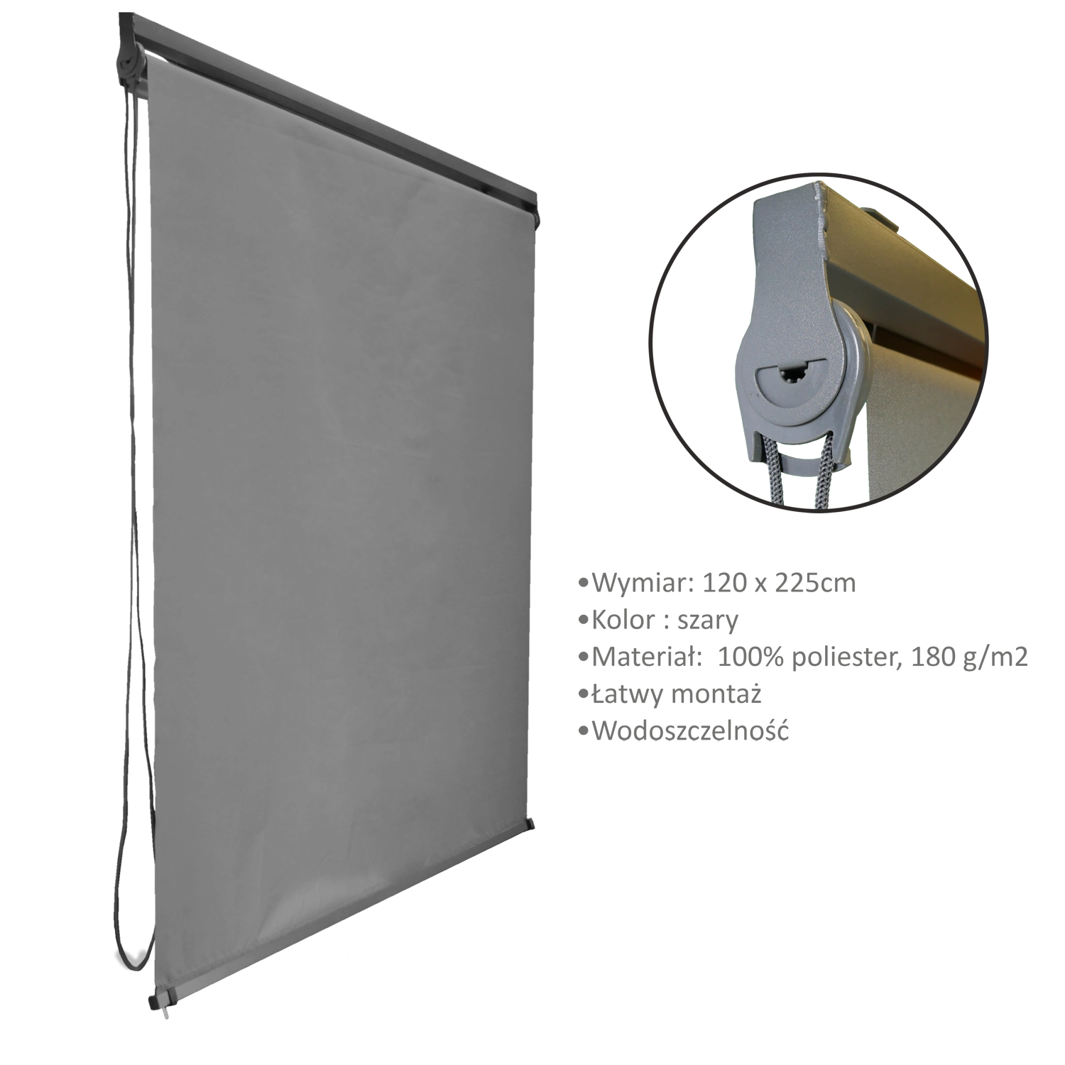 Ez a kültéri roló ideális megoldás pergolákhoz, teraszokhoz és kerti pavilonokhoz. A masszív, stílusos szürke poliészter szövet hatékonyan szűri a napsugarakat, segítve a kellemes hőmérséklet fenntartását még forró napokon is.