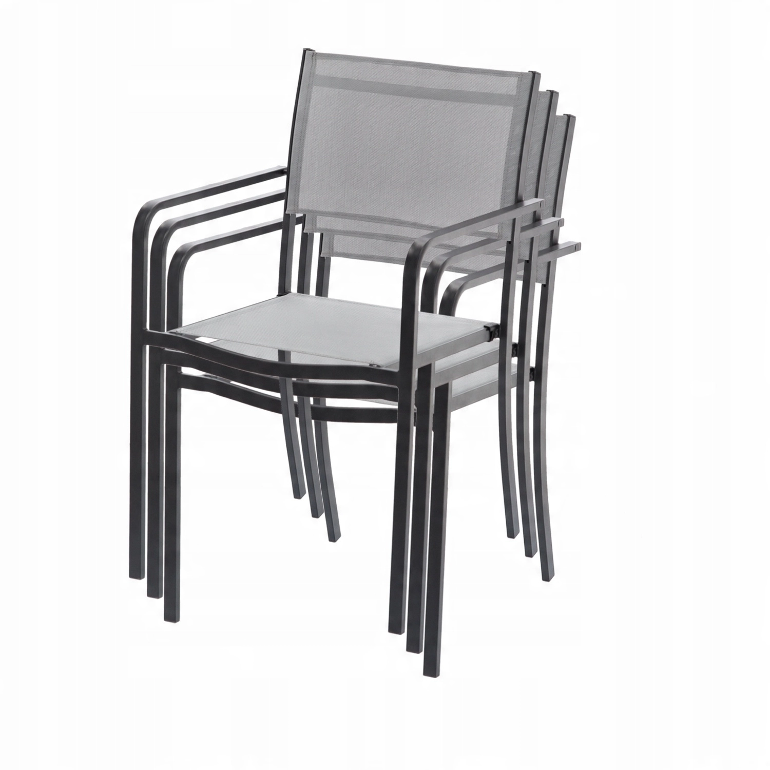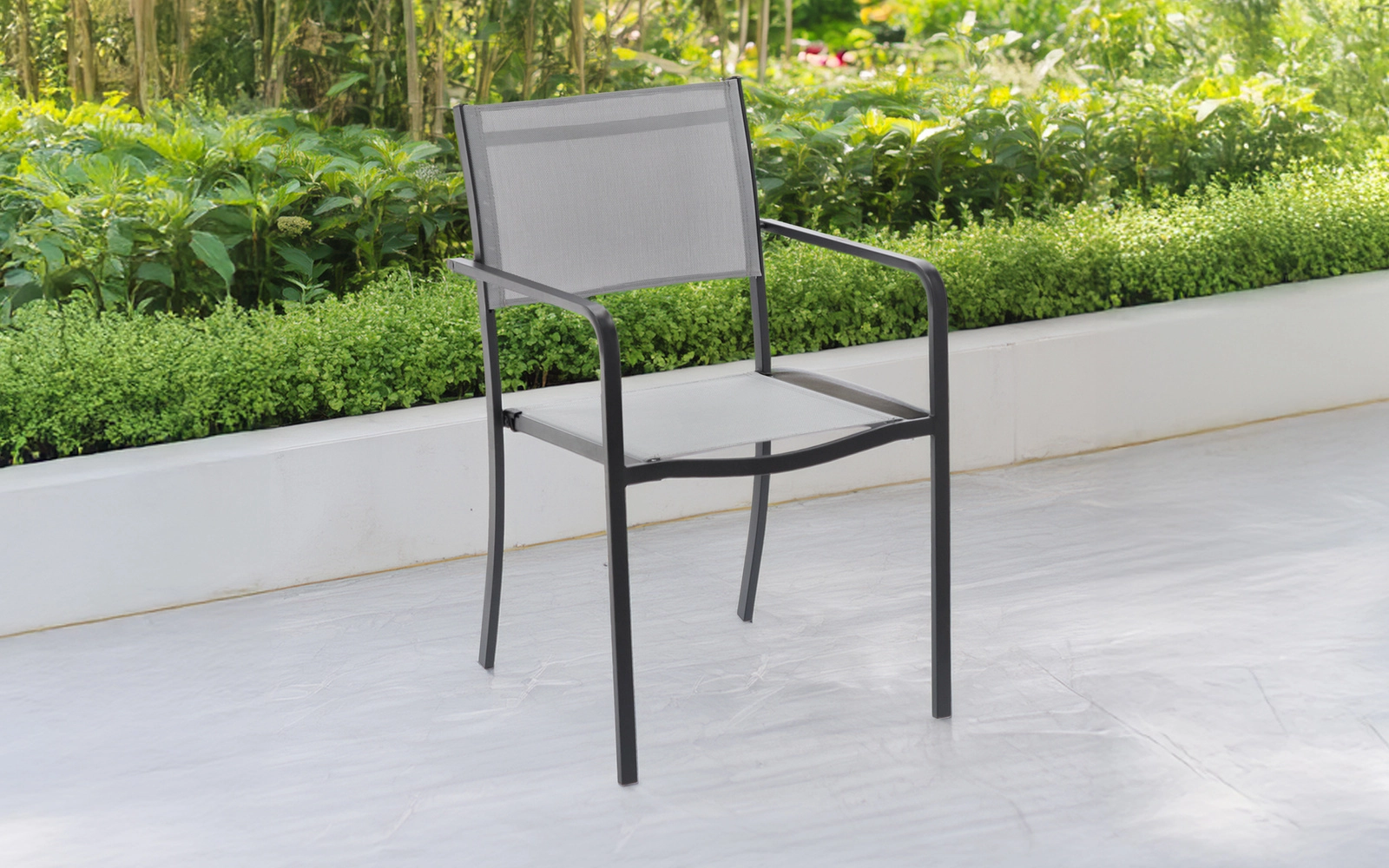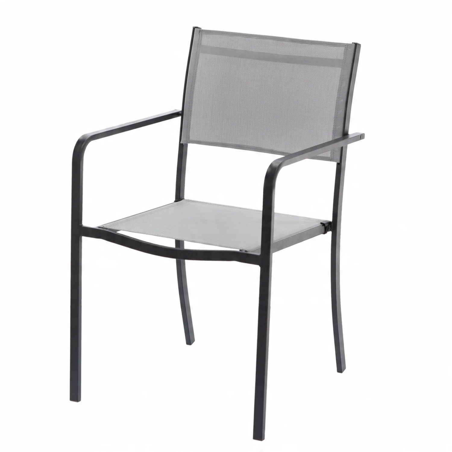 A szürke kerti fotel ideális választás teraszra, erkélyre, valamint kávézókba és kültéri éttermekbe. A légáteresztő 2×1 textilén ülőfelület és háttámla meleg napokon is kényelmet nyújt, míg a porszórt acélváz hosszú élettartamot és időjárásállóságot biztosít.