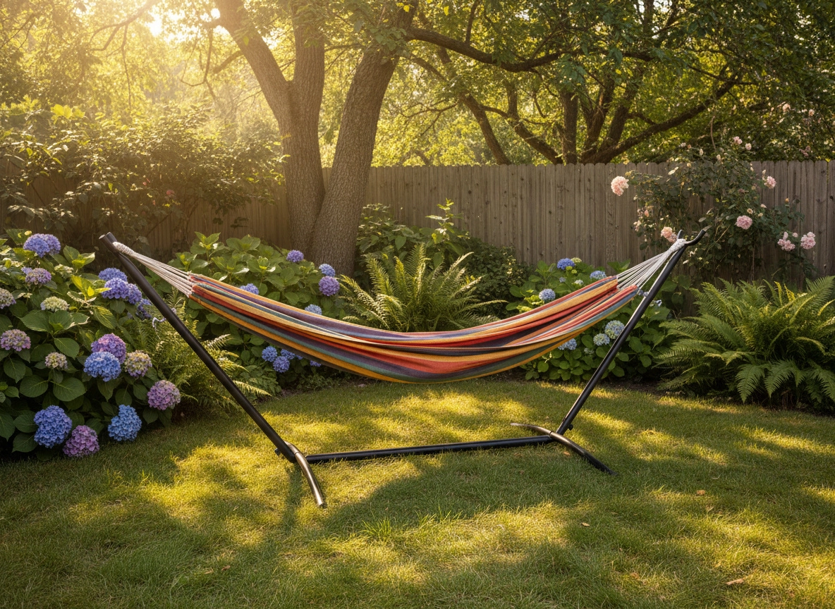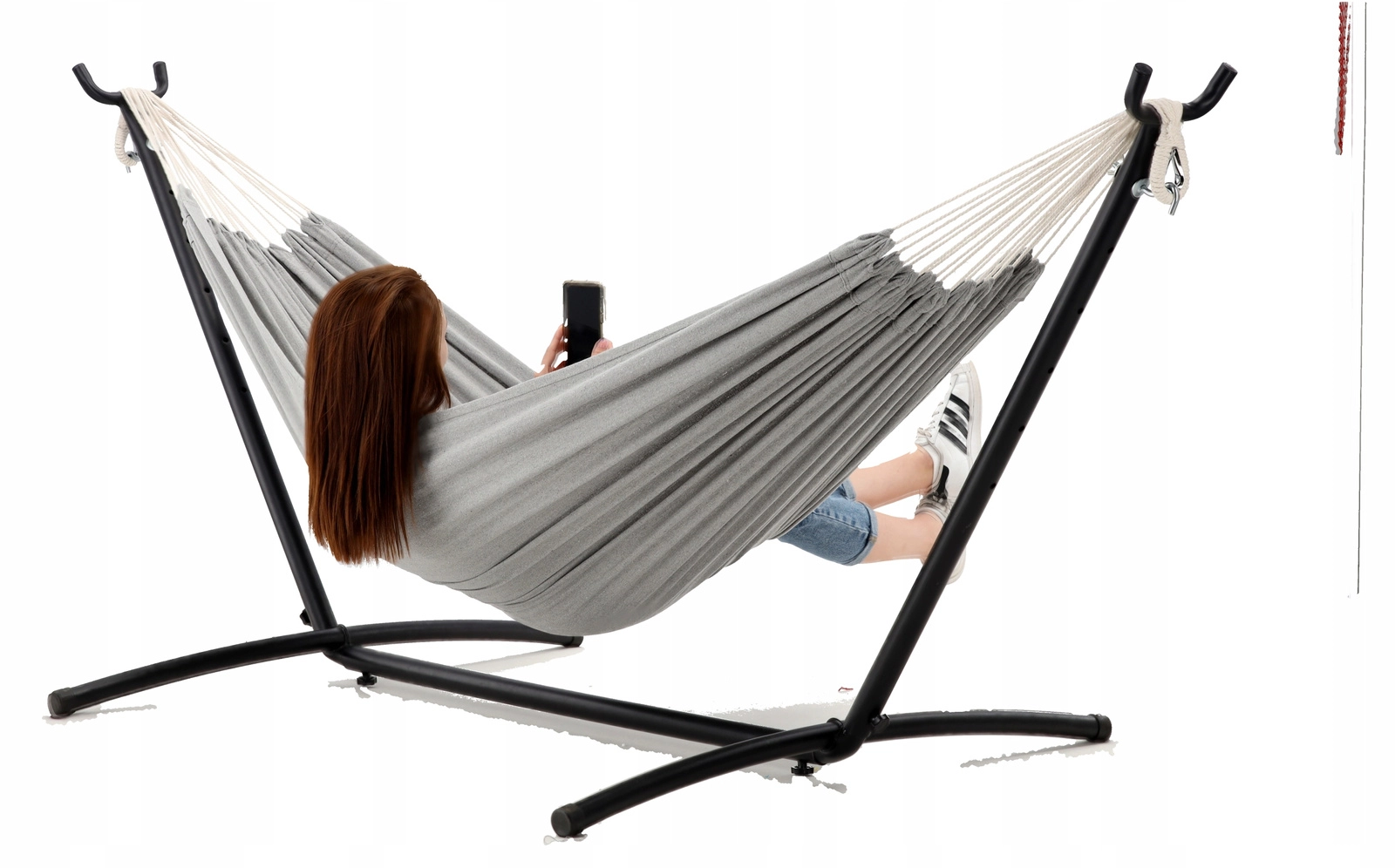 A szabadon álló váz lehetővé teszi a függőágy felfüggesztését a kertben, a teraszon vagy a gyepen – fúrás és alkalmas rögzítési pontok keresése nélkül.