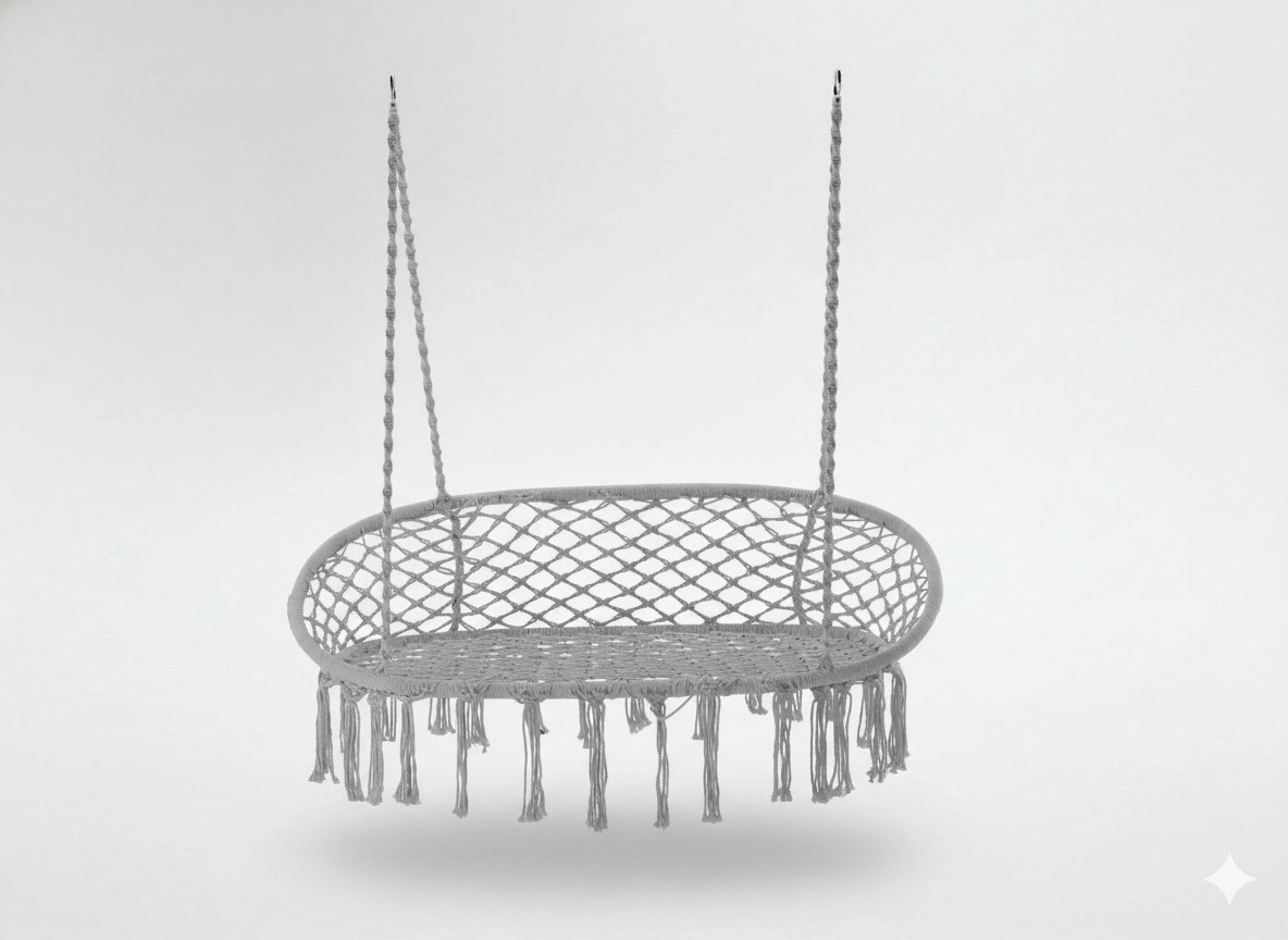 Kényelmes ringatózás és lazítás kettesben. A tágas, 110 × 62 cm-es ülőfelület és a kellemes tapintású szövet semleges szürkében meghitt helyet teremt olvasáshoz, kávézáshoz vagy pihenéshez egy hosszú nap után. A tartós, porfestett acélkeret szilárdságot, stabilitást és hosszú élettartamot biztosít.