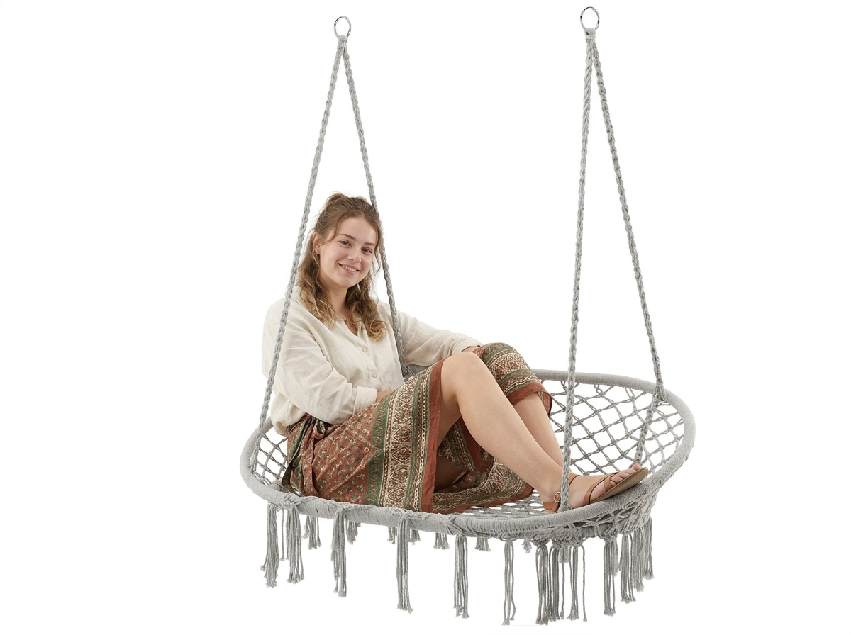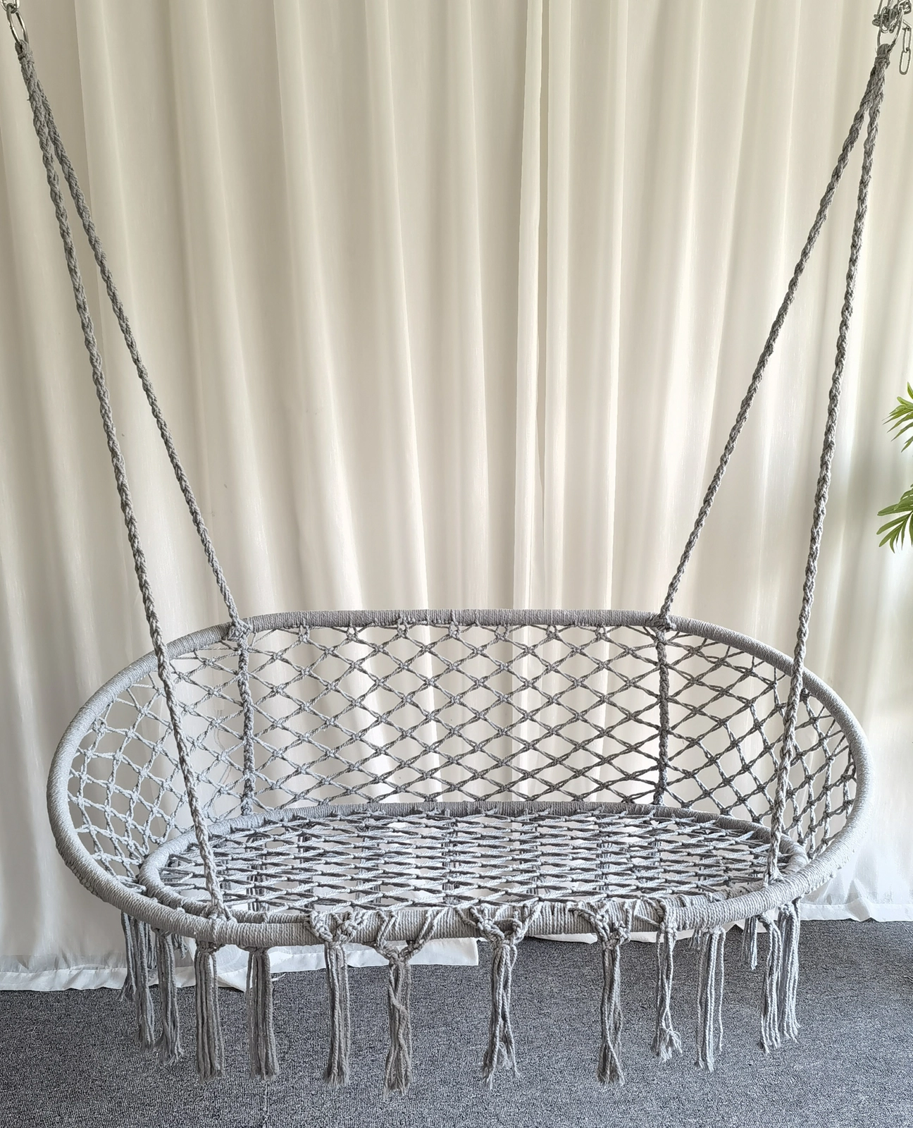 Élvezd a tökéletes pihenést kettesben. Ez a szürke, dupla függőszék egyesíti a kényelmet, a stabil acélkeretet és a magas, 300 kg teherbírást. Stílusos színe és a puha, kevertszálas szövet erkélyre, teraszra és kertbe egyaránt illik.