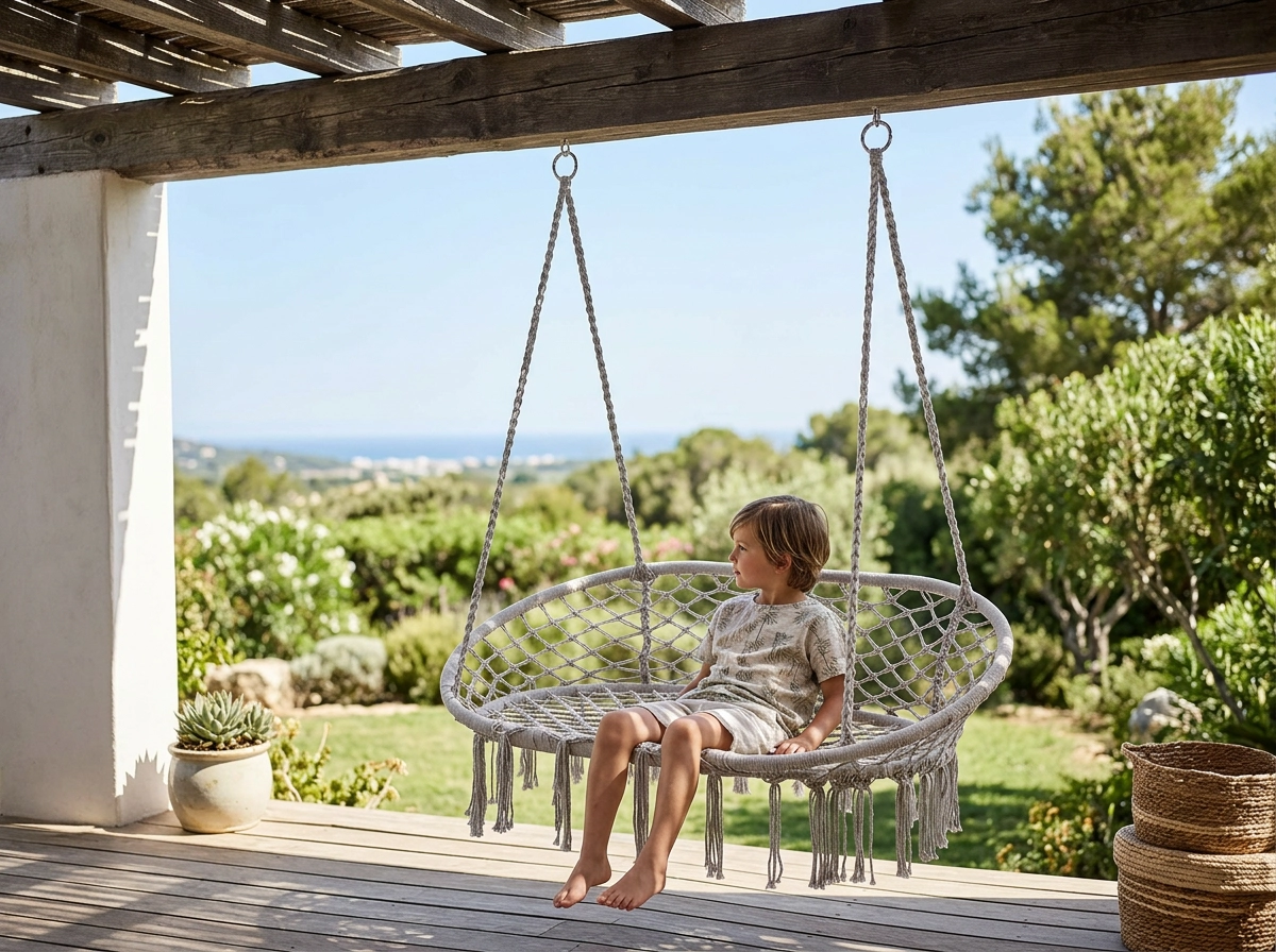 A széles, 130 × 73 cm-es háttámla és a legfeljebb 300 kg teherbírás magabiztosságot ad közös használatkor is. Időtálló kialakítása miatt könnyedén illeszkedik a modern és a bohó stílusú kültéri vagy beltéri terekhez.