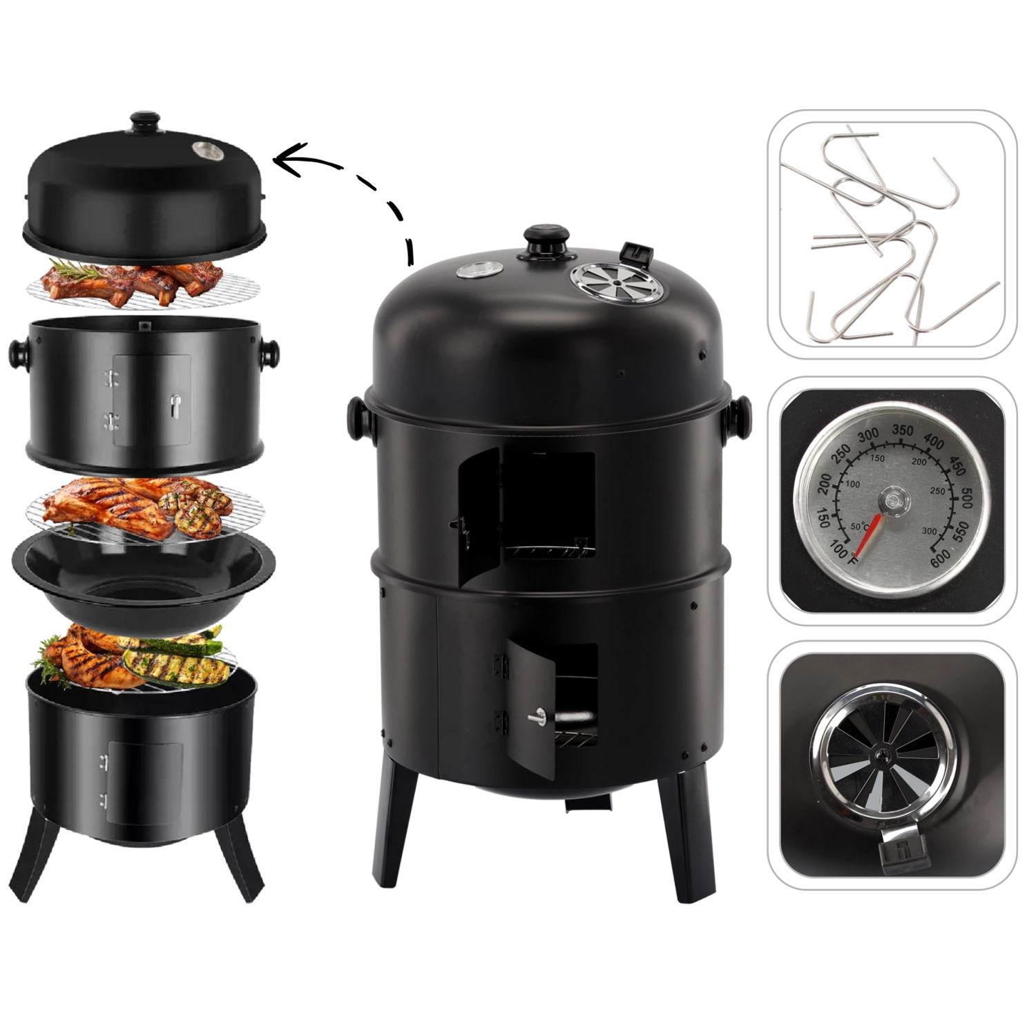 - Vertikális faszenes grill / füstölő / tűzrakóhely 3 az 1-ben