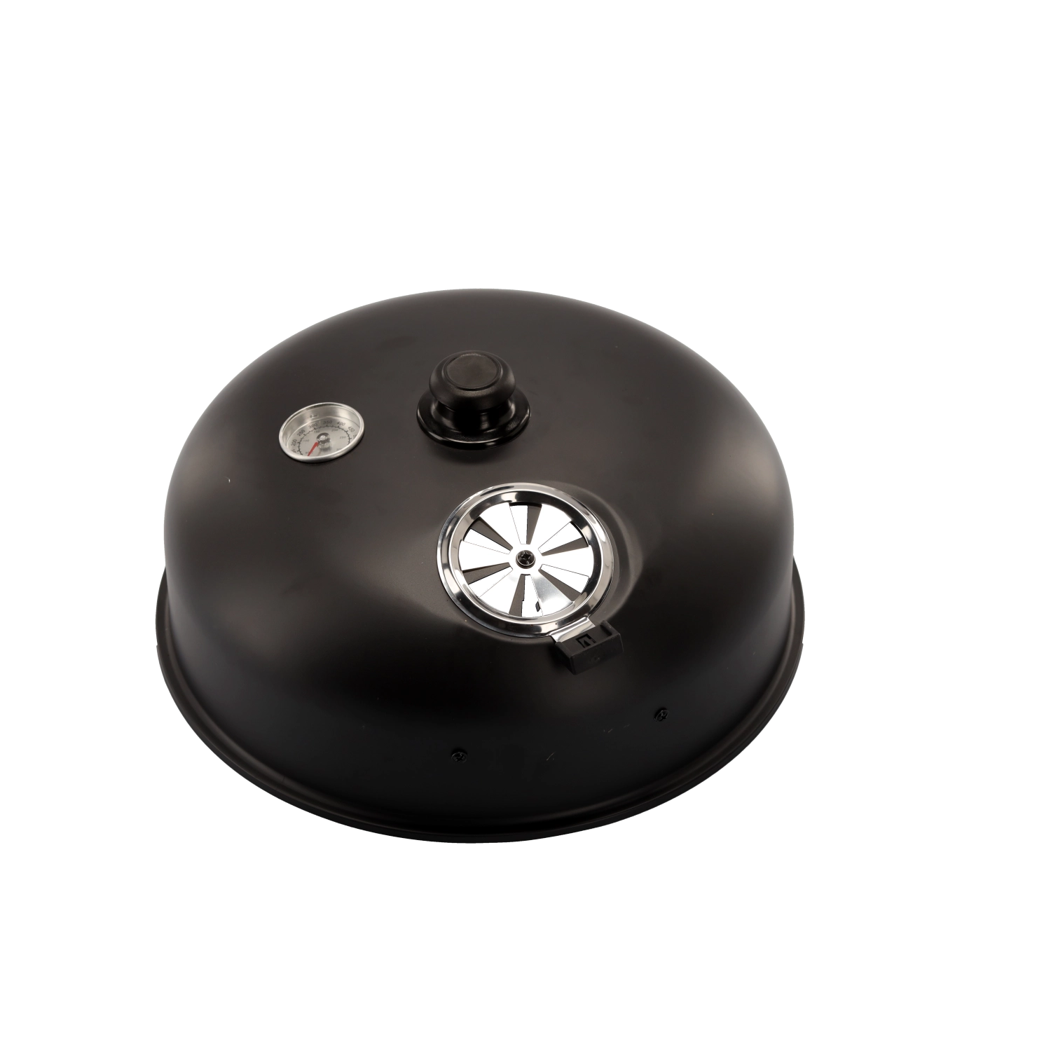 A fedélbe épített hőmérő és az állítható szellőzőnyílások stabil hőmérsékletet biztosítanak a szaftos eredményhez és a tökéletes füstös aromához.