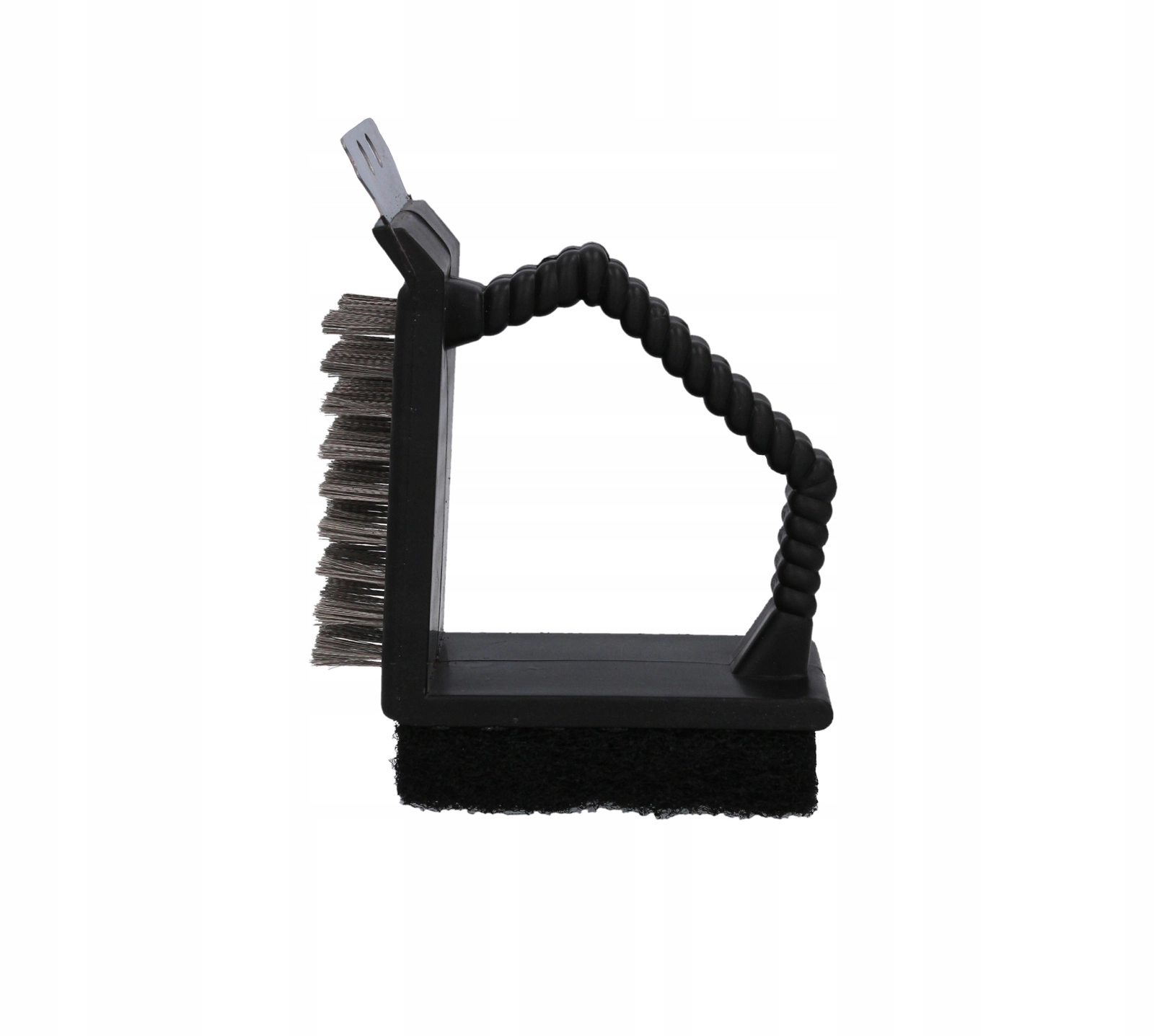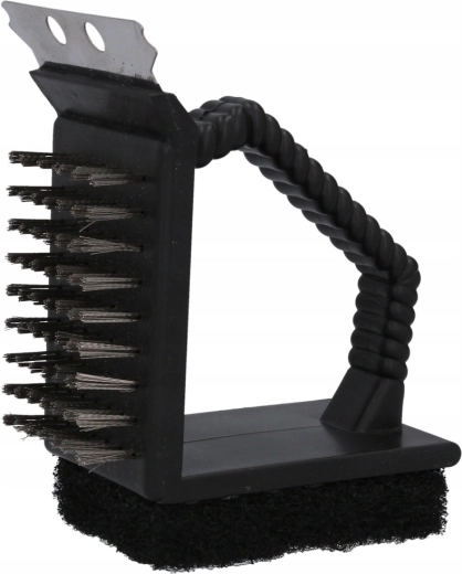 Praktikus eszköz a grillrács gyors és alapos tisztításához. A erős sörték a durvább szennyeződésekhez, a kaparó az odaégett részekhez és a szivacs a végső áttörléshez együtt pillanatok alatt tiszta rácsot biztosítanak. Kompakt méretének köszönhetően könnyen tárolható, és bármely grillhez illik.