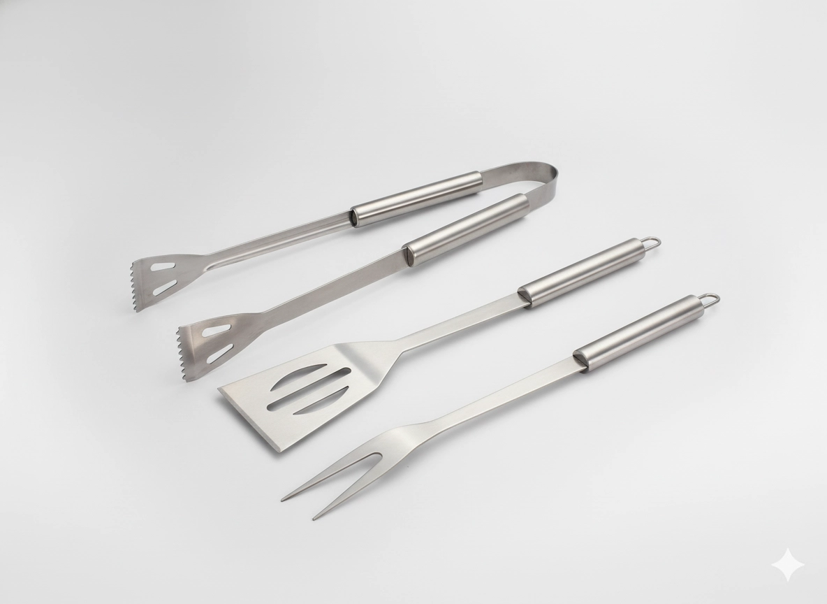 Praktikus készlet minden grillezésrajongónak: lapát, villa és fogó strapabíró rozsdamentes acélból, kompakt tokban a könnyű hordozáshoz és tároláshoz. Ideális húsra, zöldségre és halra is – remek választás kertbe, nyaralóba vagy piknikre.