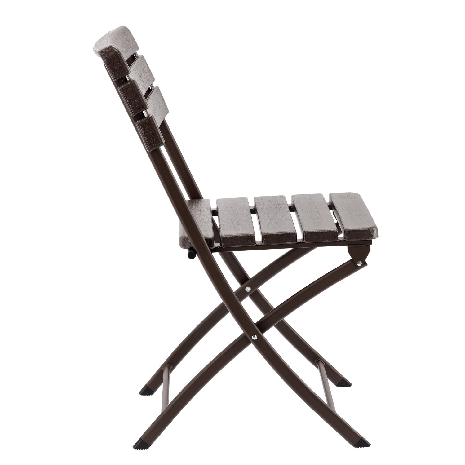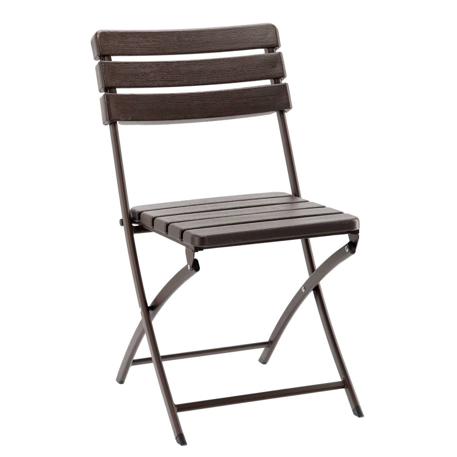 Ez a kompakt és strapabíró szék ideális a mindennapi kültéri használatra. A fa hatású barna felület természetes és elegáns, míg a masszív acélszerkezet stabilitást és hosszú élettartamot nyújt. Összecsukva minimális helyet foglal, ezért tökéletes kisebb terekbe és utazáshoz.