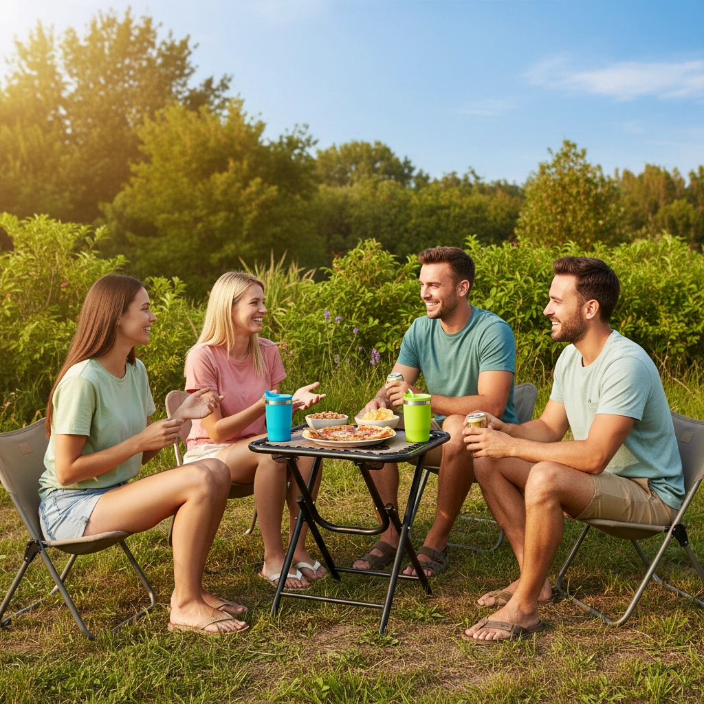 Az asztalt néhány másodperc alatt, szerszám használata nélkül felállíthatja. Tartós anyagainak köszönhetően egész évben használható, és könnyen tisztítható. Könnyű, hordozható, és kevés helyet foglal az autóban vagy a szekrényben.