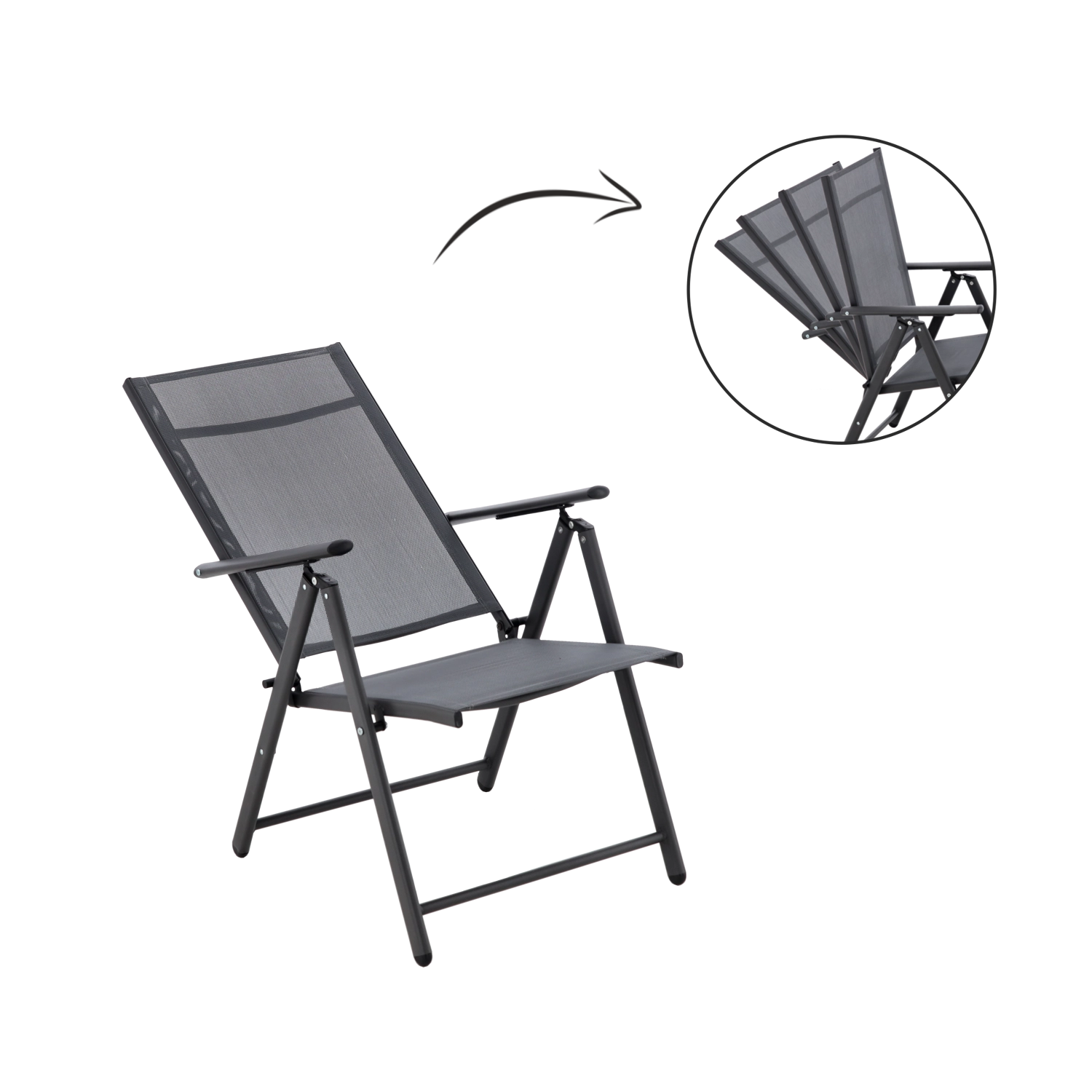 Ez az összecsukható kerti szék a masszív acélvázt ötvözi a lélegző, gyorsan száradó textillel, amely meleg napokon is kellemes. A 7 pozícióban állítható háttámlának köszönhetően könnyen beállíthatod az ideális testhelyzetet – az asztal melletti üléstől az árnyékos relaxálásig.