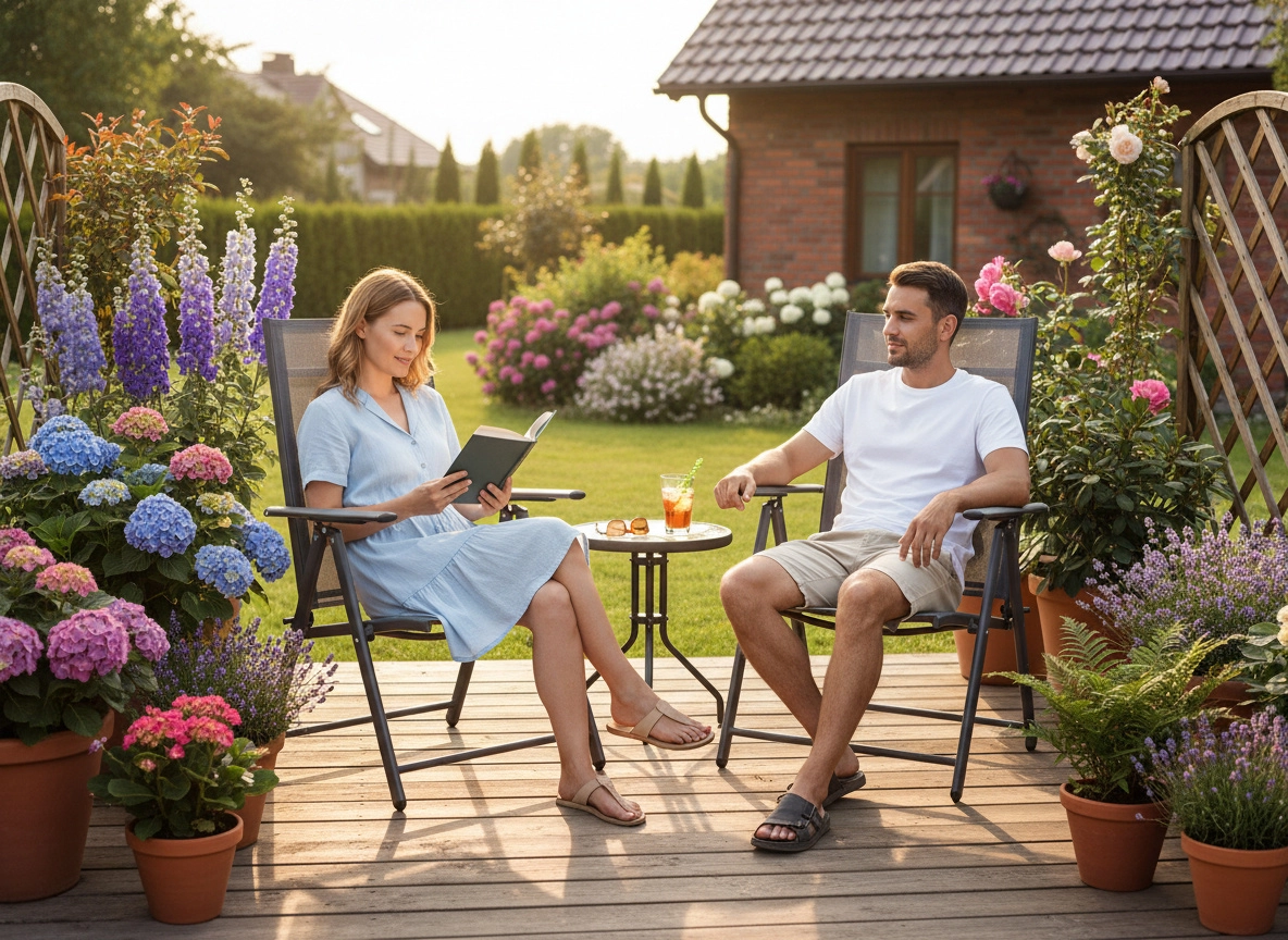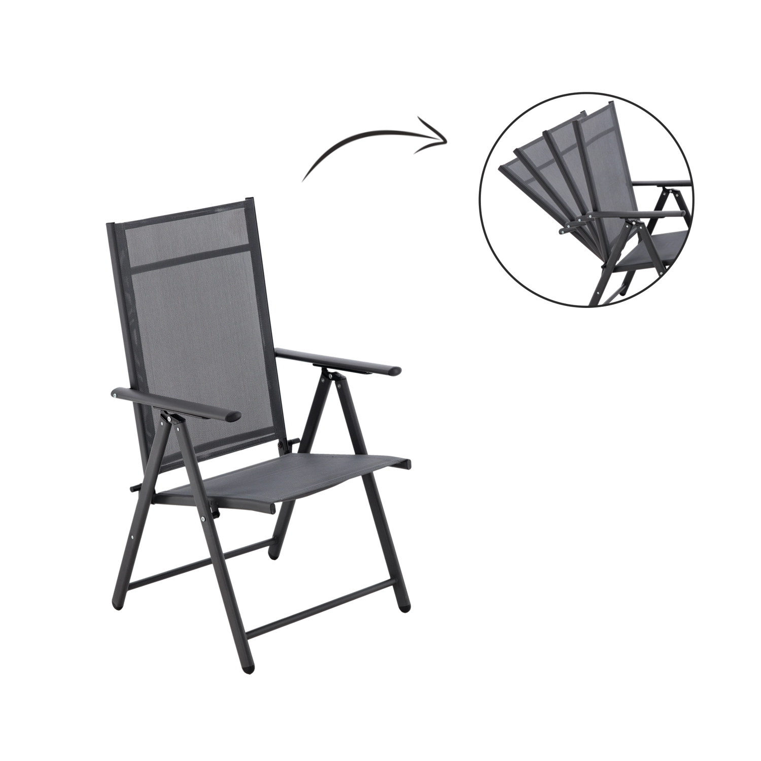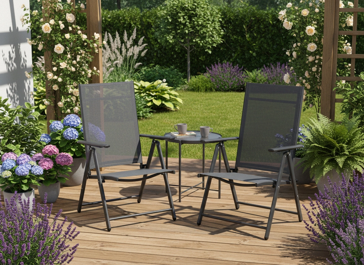 A porszórt acél növeli az időjárásállóságot és a kopásállóságot, míg a kényelmes karfák támogatják az ergonomikus ülést. Az összecsukható mechanizmus gyors tárolást és egyszerű szállítást tesz lehetővé nyaralóba vagy kempingbe.