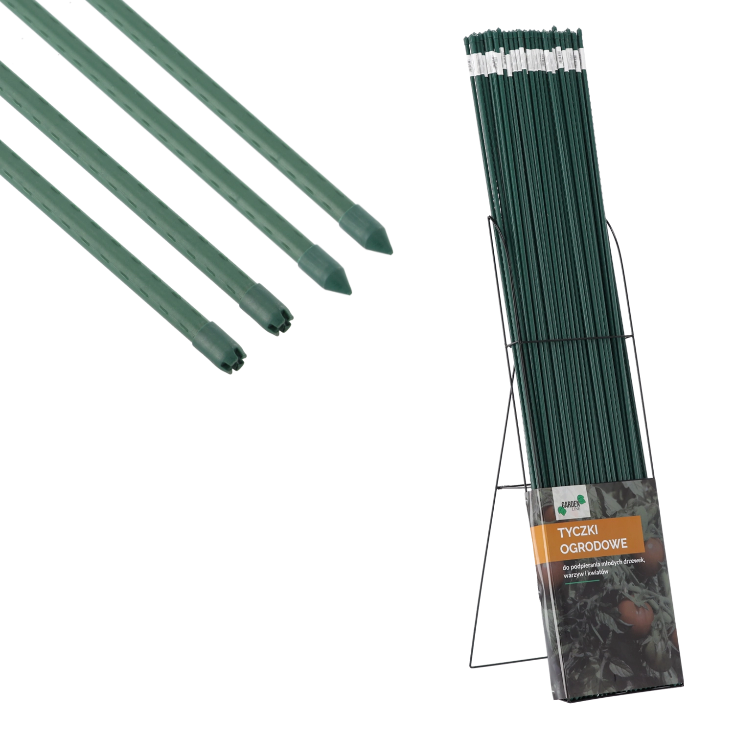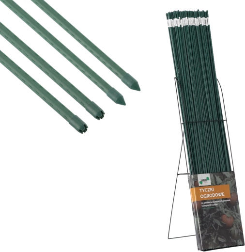 Az erős, bevonatos pálca ideális kúszónövényekhez, törékeny virágokhoz, bogyósokhoz és zöldségekhez. A hegyes végnek köszönhetően könnyen leszúrható a talajba, a hosszanti bordák pedig a szárakat és a kötözést is a helyükön tartják. A polietilén felület védi az acélmagot a korróziótól, és meghosszabbítja a támasz élettartamát egész éves használat mellett is.