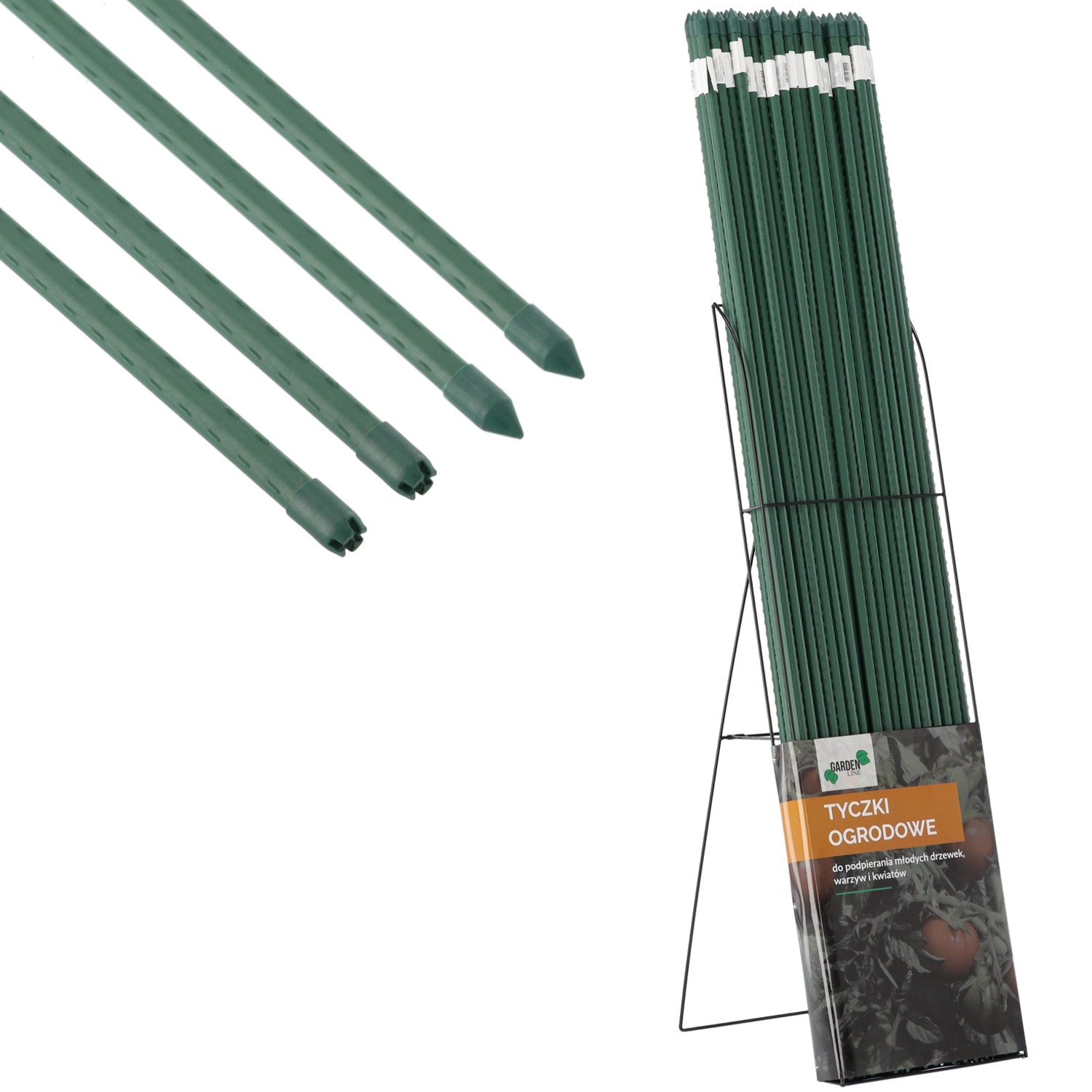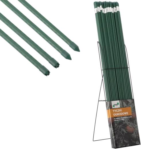 Ez a bevonatos pálca ideális kúszónövények, cserjék, finom virágok, valamint zöldség- és gyümölcsnövények megtámasztására. A fémmag szilárdságot ad, a polietilén felület véd a korróziótól és a nedvességtől. A csomag része egy acél állvány, amely bővíti a rögzítési és elrendezési lehetőségeket ágyásban vagy üvegházban.