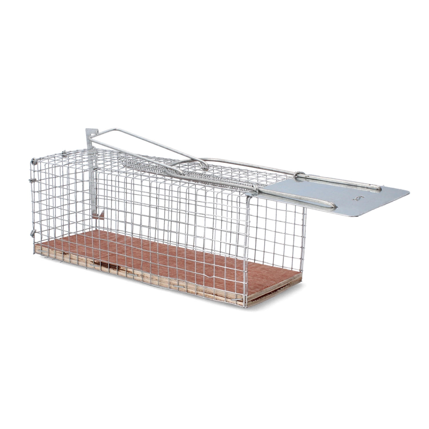 A masszív kialakítás fém alkatrészeket és rácsot kombinál fa alaplemezzel, ami tartósságot és stabilitást biztosít. Az integrált csaliakasztó hatékonyan vonzza a kártevőket, és növeli a befogás sikerességét.