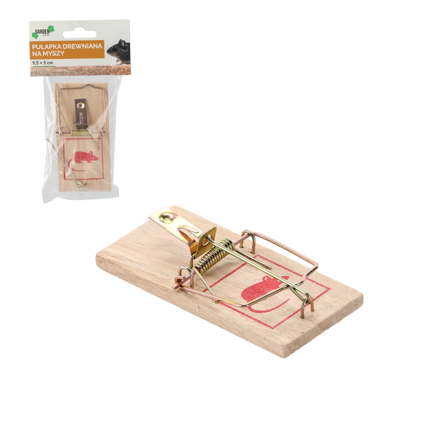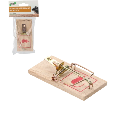 Klasszikus fa egérfogó a gyors és hatékony rágcsálóirtáshoz. Az egyszerű, fém reteszelő mechanizmus a csalétek súlya alatt aktiválódik, könnyen kezelhető, megbízható és azonnal használatra kész.