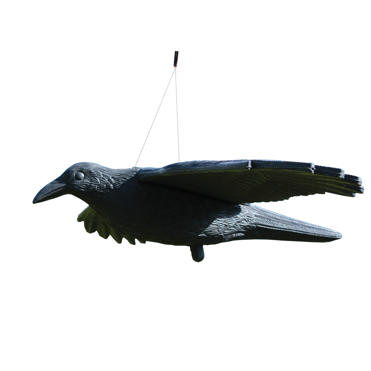 Nagy méretű, holló alakú madárriasztó, amely hatékonyan védi a kerteket, gyümölcsösöket, teraszokat és erkélyeket. A realista megjelenés és az impozáns méretek a ragadozó jelenlétét utánozzák, így elriasztják a galambokat, seregélyeket és verebeket. Időtálló műanyagból készült, nagyobb nyílt területekre is alkalmas.