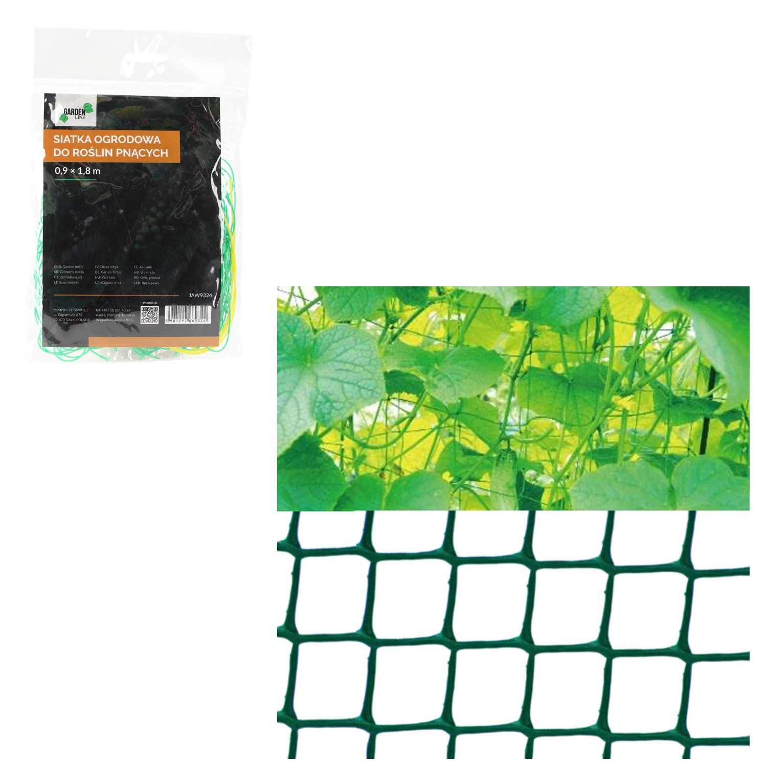 A zöld támasztóhálót futónövények vertikális nevelésére tervezték. A nagy szemű, polipropilén műanyag rács stabil kapaszkodási pontokat ad a növényeknek, javítja a levegő keringését, és maximalizálja a helykihasználást üvegházban és szabadföldi ágyásban egyaránt.
