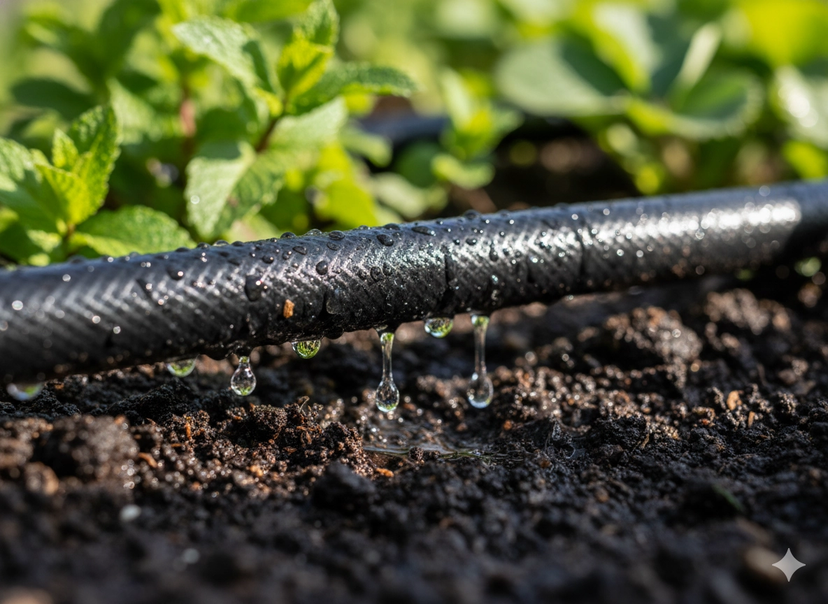 A csepegtető tömlő ideális ágyásokhoz, fóliasátrakhoz és hosszabb növénysorokhoz. A porózus fal egyenletes vízleadást biztosít a teljes hosszon, így közvetlenül a gyökérzónát öntözi felesleges párolgás és pazarlás nélkül. A víznyomás beállításával könnyen szabályozható az öntözés intenzitása az aktuális körülményekhez.
