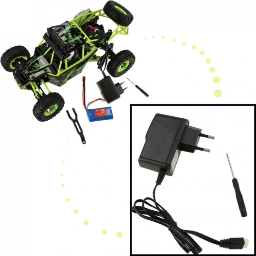 - WLToys 12428 modell, RC adó, 7,4 V 1500 mAh akkumulátor, töltő, csavarhúzó, kulcs, kézikönyv