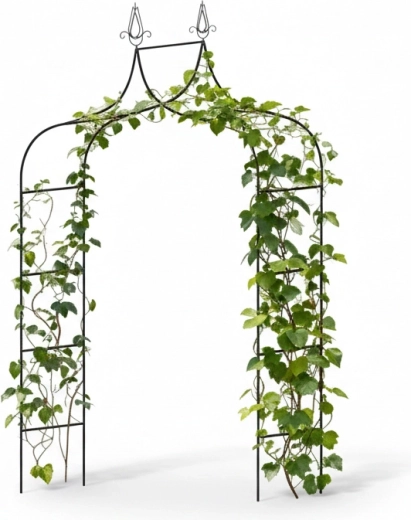 Vigyen stílust és funkcionalitást a kertjébe. Ez a pergola finoman formált díszcsúcsokkal a felső részen uralkodó eleme lesz az ösvénynek, a bejáratnak vagy egy nyugodt pihenősaroknak. A lendületes, függőleges támasz kúszónövényekhez lehetővé teszi a rózsák, iszalagok és borostyán számára, hogy magasan növekedjenek, természetes, árnyas átjárót hozva létre.