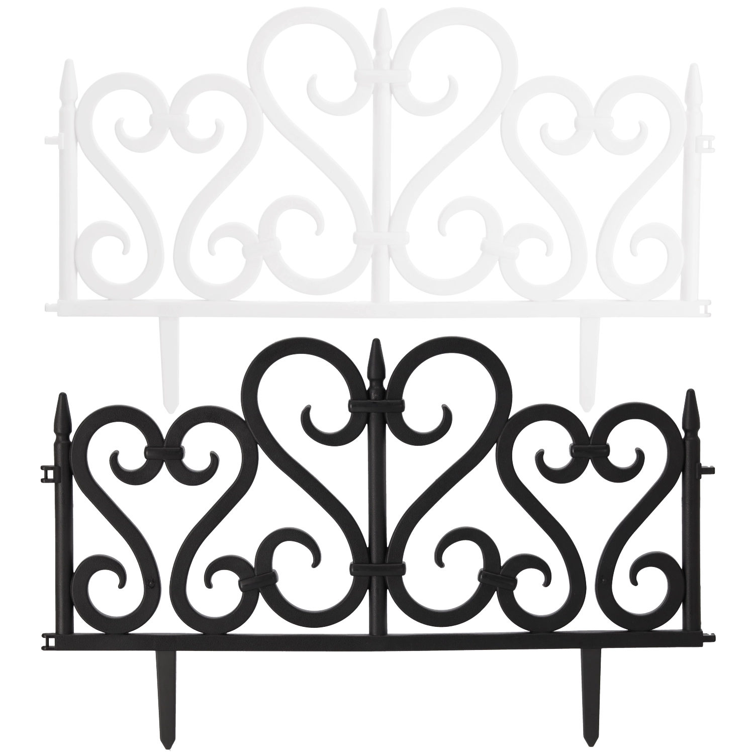 Ezzel a 4 dekoratív kerti kerítésből álló szettel könnyedén tiszta vonalakat alakíthat ki az ágyások, sziklakert és járdák mentén. Az univerzális fehér vagy fekete kivitel bármely kerthez illik, kiemeli a növények és a rendezett szegélyek megjelenését. A levehető talpaknak köszönhetően a szerelés és a szétszerelés gyors, szerszám nélkül elvégezhető.