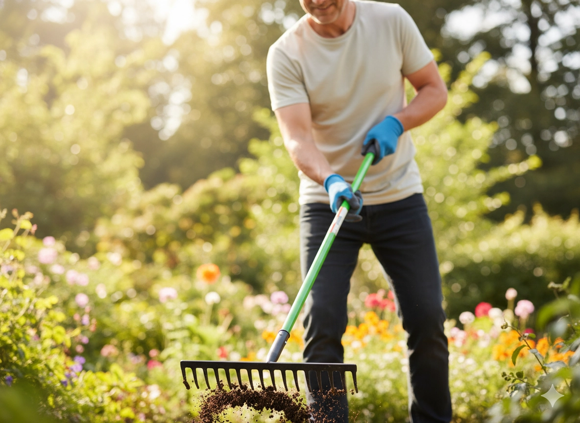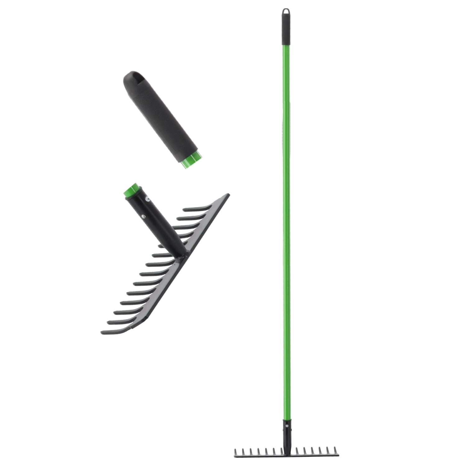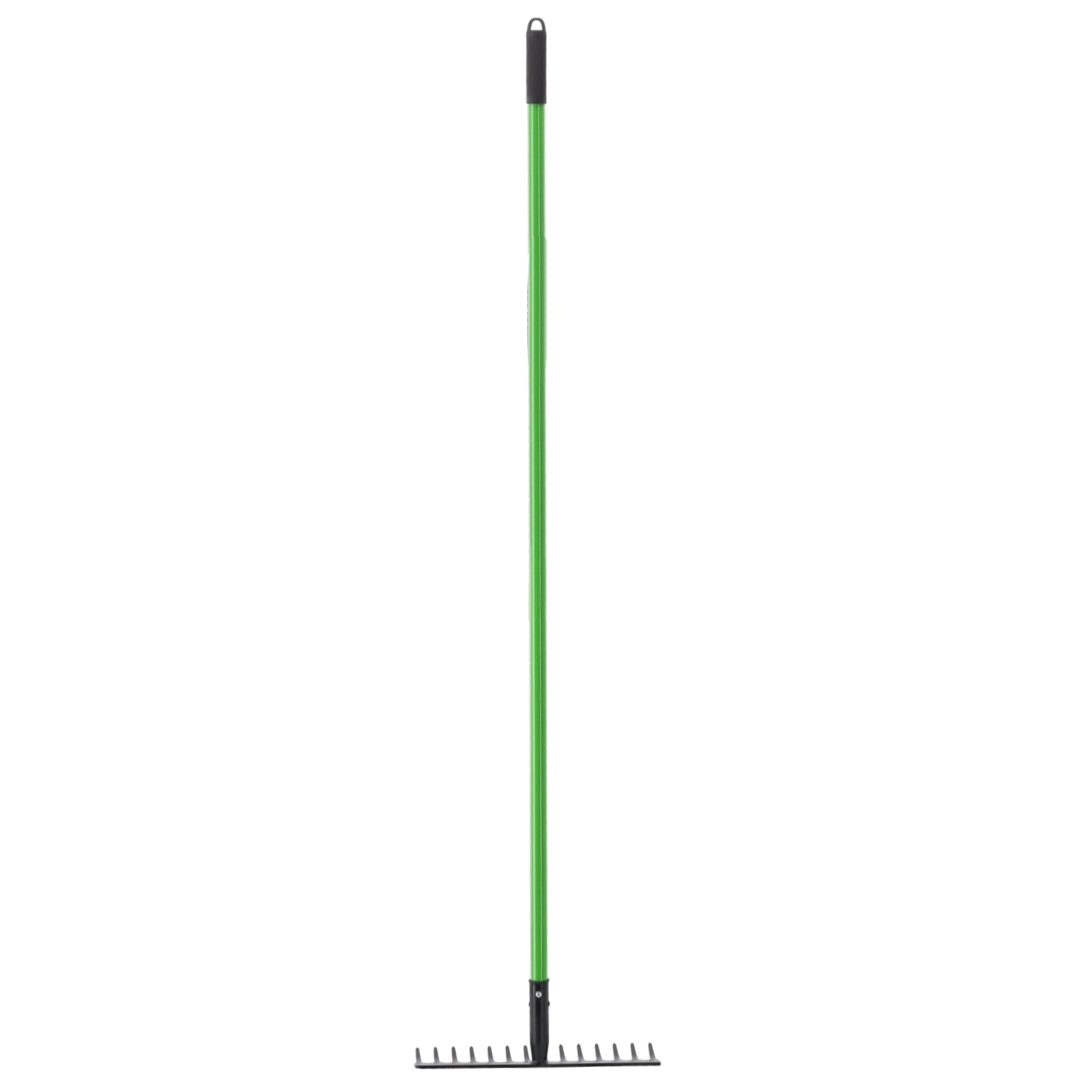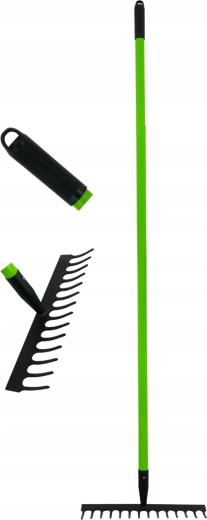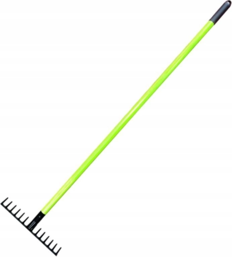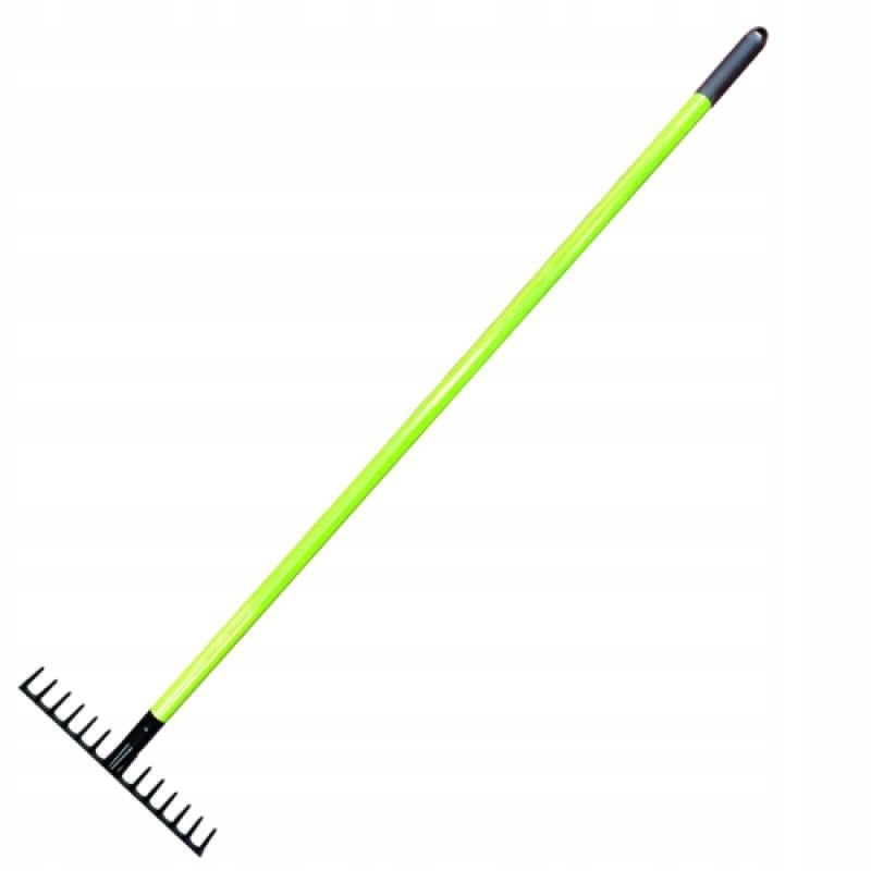 Praktikus kerti gereblye könnyű és tartós üvegszálas (fiberglass) nyéllel, kényelmes munkához kertben és építkezésen egyaránt. A porszórt acél fej ellenáll a korróziónak, az csúszásmentes markolat növeli a biztos fogást, az ergonomikus kialakítás pedig csökkenti a fáradtságot hosszabb használat során.