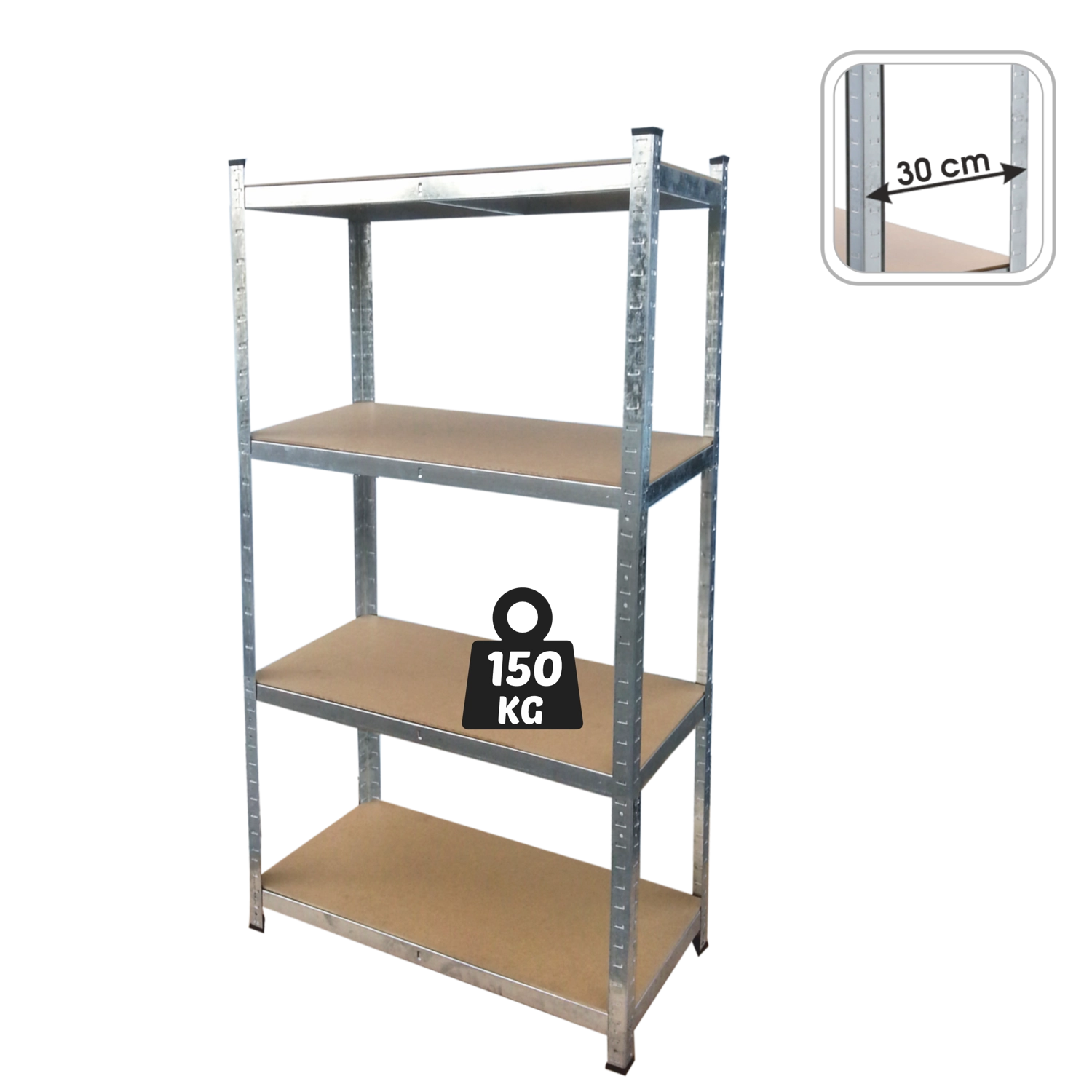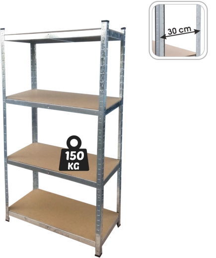 Tartós és áttekinthető tárolási megoldást keres? Ez a négyszintes fém állvány MDF polcokkal nagyfokú stabilitást, rugalmas elrendezést és akár 150 kg teherbírást polconként kínál. Ideális garázsba, pincébe, raktárba és otthonra.