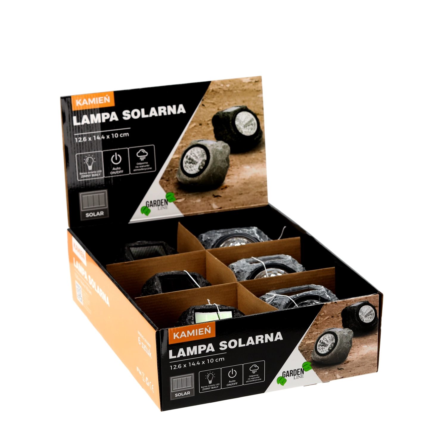 A négy fehér LED dióda finom, egyenletes fényt biztosít, a BE/KI kapcsoló pedig lehetővé teszi az egyszerű kikapcsolást hosszabb távollét idejére. A strapabíró anyagok és az IP44 védettség véd a fröccsenő víztől és az időjárástól. Fekete és szürke változatban kapható, amelyek természetesen illeszkednek a kőzúzalékhoz és a mulcshoz.