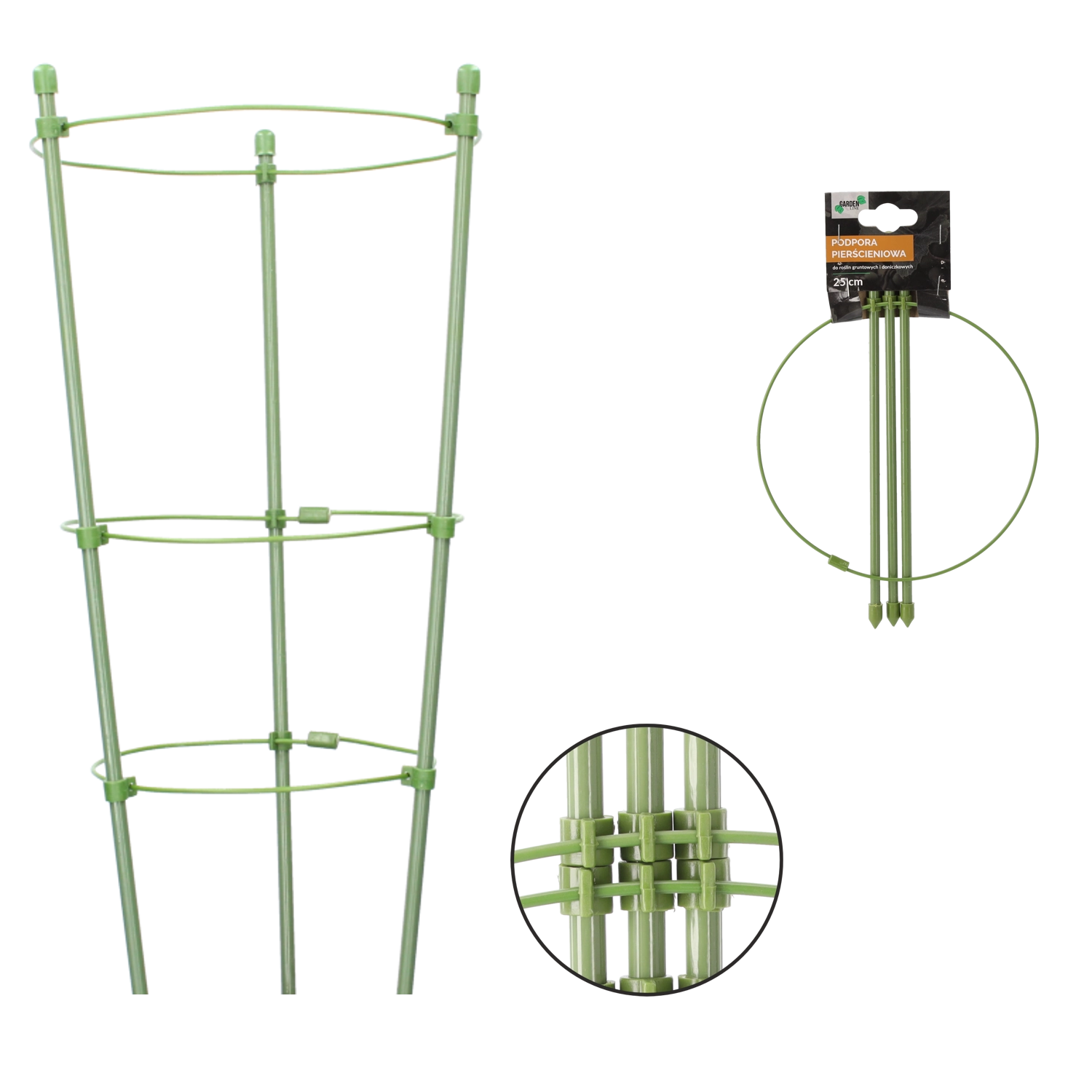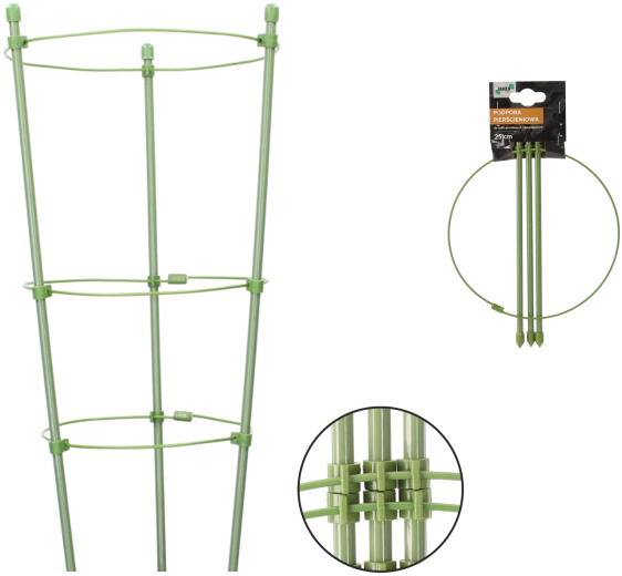 Ez a kör alakú támasz ideális ágyásokban és cserepekben való termesztéshez. A polietilén bevonatú tartós acél hosszú élettartamot és időjárásállóságot biztosít. Megakadályozza, hogy a növények a földre dőljenek, és elősegíti a egyenes, egészséges növekedést a szárak törése nélkül.