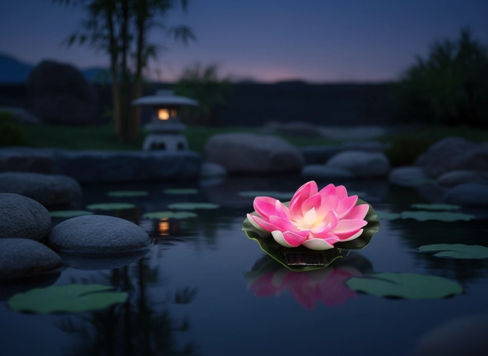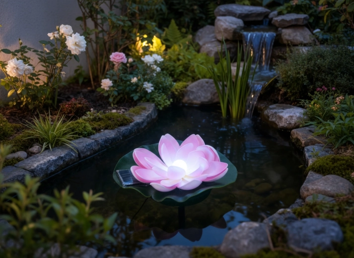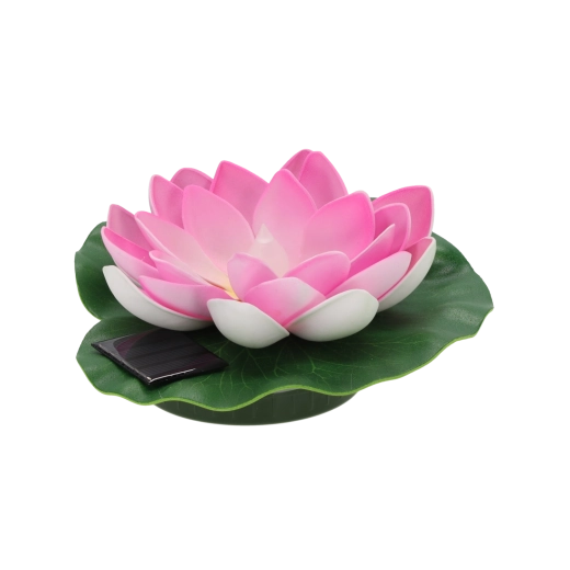 Az élethű sziromlevelekkel és zöld levéllel kialakított design természetes megjelenést és stabil lebegést biztosít. A vezeték nélküli, környezetbarát, karbantartást nem igénylő megoldás tökéletes kerti tavakhoz, kisebb vízfelületekhez és dekoratív víztartályokhoz.