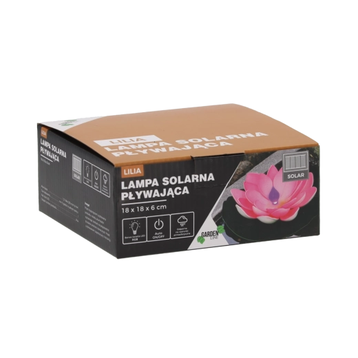 Díszes, napelemes, úszó liliom beépített RGB LED-del, amely varázslatos hangulatot kölcsönöz a tó-, szökőkút- vagy medencevíznek. A élethű sziromlevelek és a stabil levél biztosítják a természetes hatású megjelenést és a magabiztos lebegést. A napelemes tápellátás kábelek és energiaköltségek nélkül működik, míg a szürkületkor automatikus felkapcsolás finom, több színű fényt ad egész estén át.