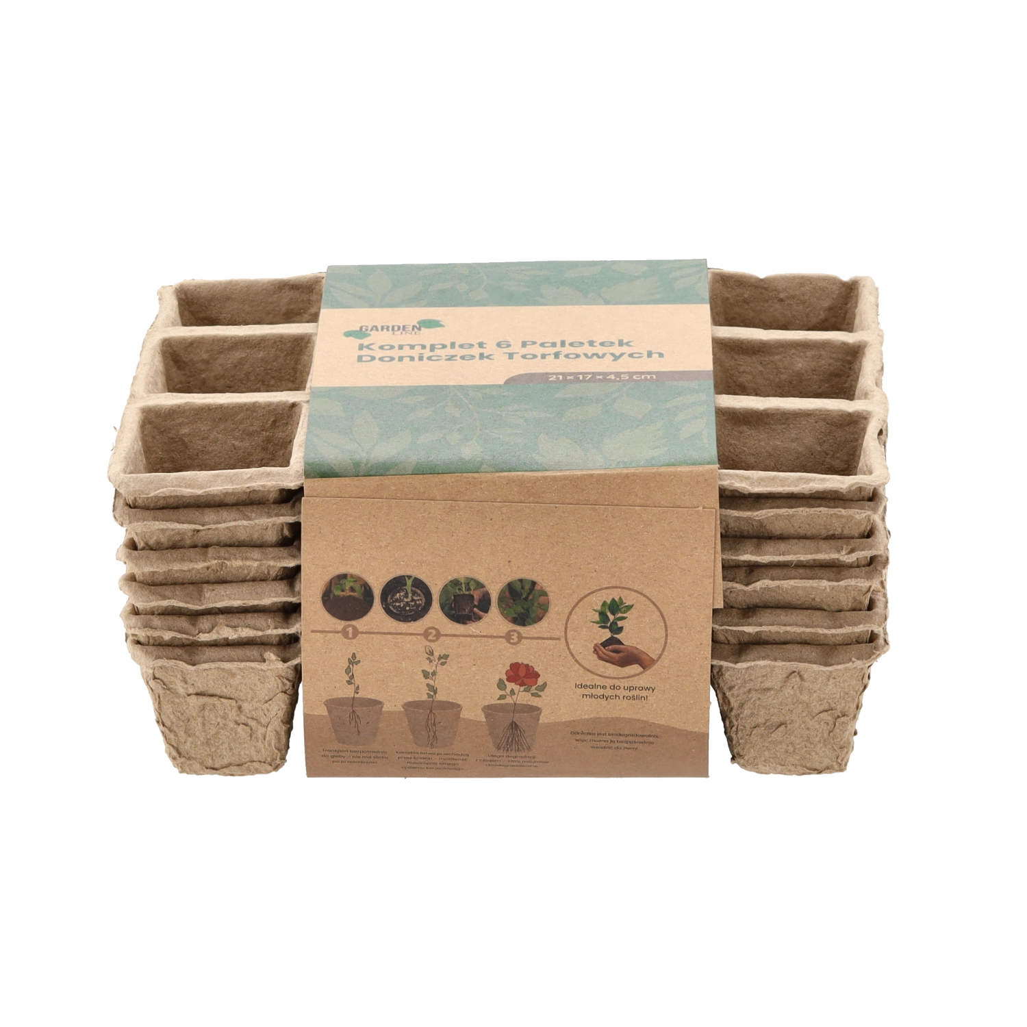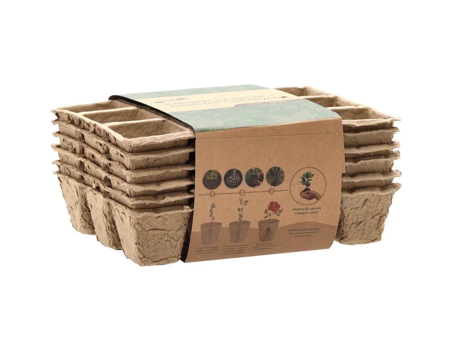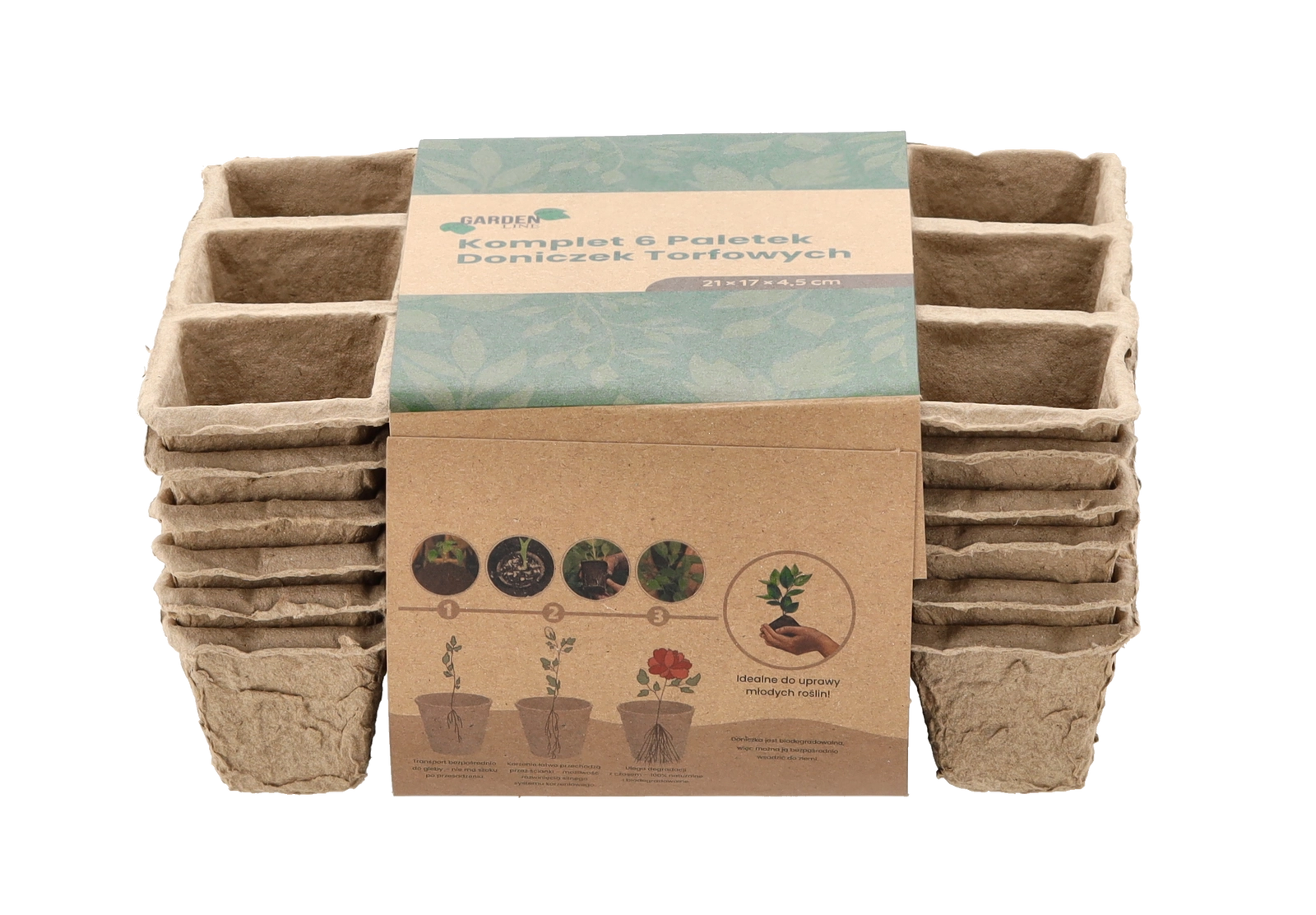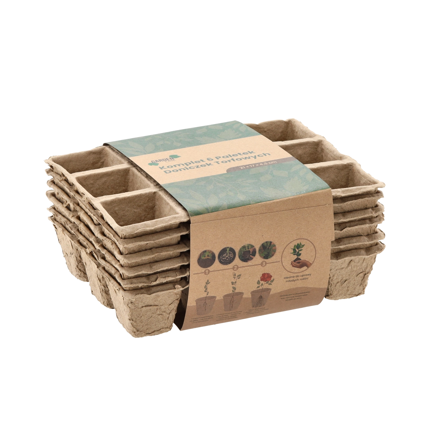 Környezetbarát, préselt papírszálas anyagból készült 6 darabos tálcakészlet zöldség-, fűszer- és virágpalánták előneveléséhez. A tálcák 100% biológiailag lebomlóak, lehetővé teszik a közvetlen kiültetést a talajba a gyökerek megzavarása nélkül, és vízelvezető nyílásokkal rendelkeznek az egészséges növekedéshez.