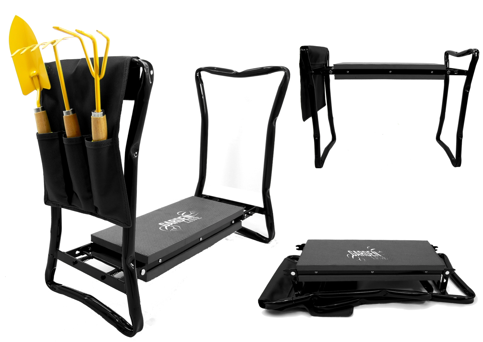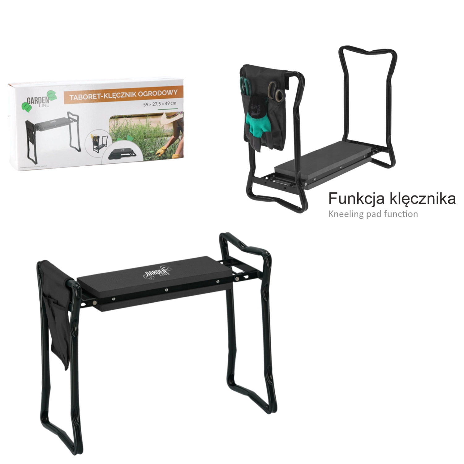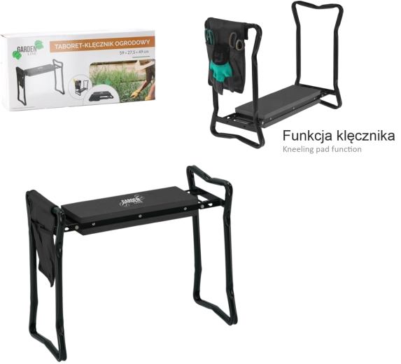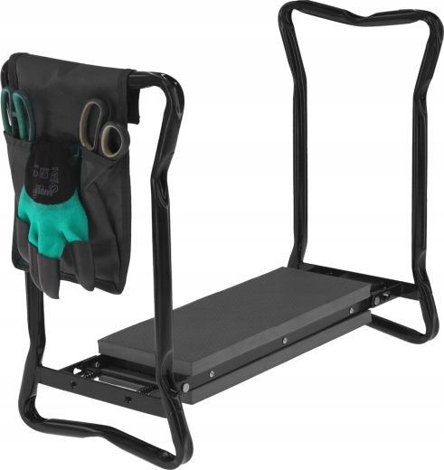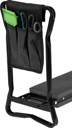 Az oldalsó textil zsebszervező mindig kéznél tartja az ollót, a kis gereblyét vagy a kesztyűt. A összecsukható lábaknak köszönhetően a termék könnyen elfér a garázsban vagy az autóban, és magaddal viheted a kertbe, piknikre vagy horgászathoz. A minőségi anyagok (vas/acél, EVA hab, Oxford szövet) biztosítják a hosszú élettartamot és tartósságot a mindennapi használat során.