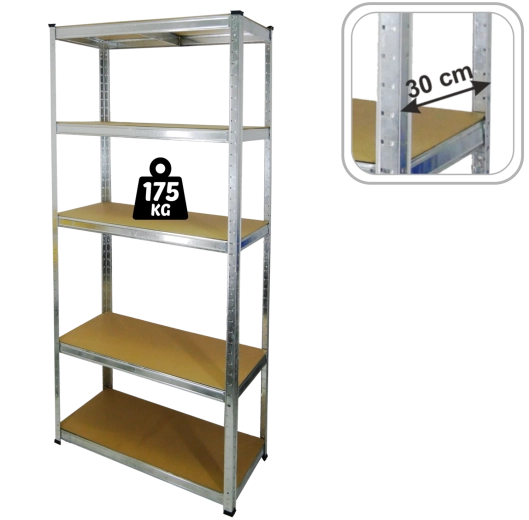 Megbízható és erős tárolómegoldást keres? Ez az ötpolcos fém állvány a tartós horganyzott profilokat HDF polcokkal ötvözi, így hosszú élettartamot és stabilitást biztosít. Minden polc hosszanti merevítésekkel van ellátva, amelyek növelik a teherbírást és a teljes szerkezet merevségét.