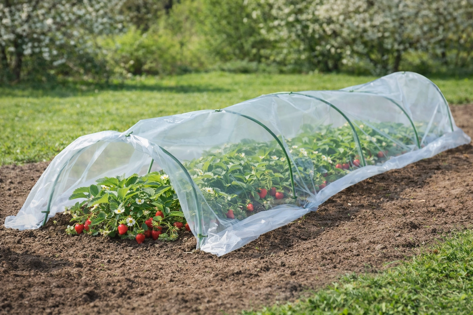 Az áttetsző fólia átereszti a fényt, és megtartja a hőt és a nedvességet. A növények korábban indulnak fejlődésnek, és hetekkel előbb szüretelhet.