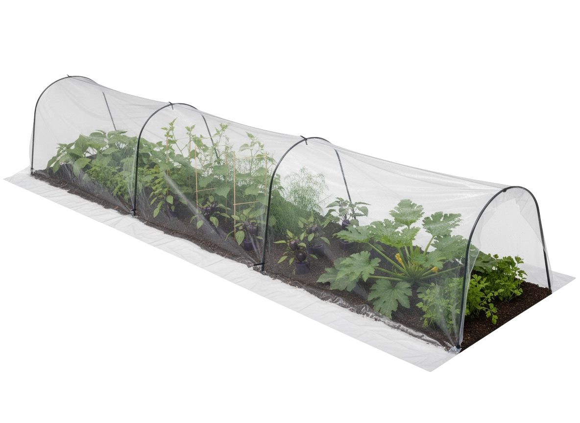 A mini üvegház – alacsony kerti alagút ideális saláták, eper, gyökérzöldségek termesztéséhez és palánták előneveléséhez. Az áttetsző fólia átengedi a fényt, megtartja a hőt és a nedvességet, így stabil, meleg környezetet biztosít hűvösebb időben is. A szerkezet strapabíró és többször felhasználható, alkalmas kertekbe, ágyásokra és magaságyásokra is.