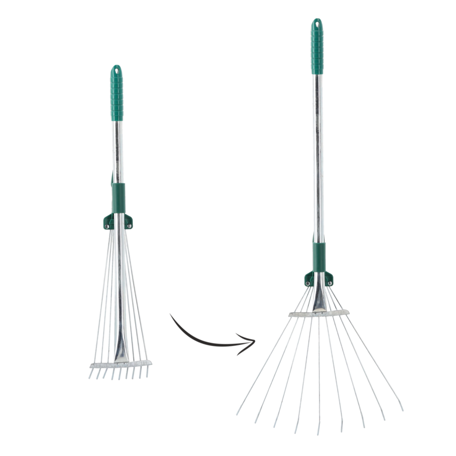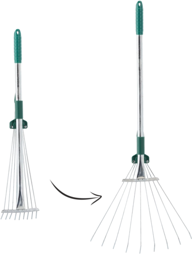 Az állítható legyezőgereblye ideális választás a mindennapi kerti takarításhoz. Az állítható fej rugalmas, hajlékony drótjai lehetővé teszik a munkaszélesség változtatását a precíz munkához szűk helyeken, illetve a gyors gereblyézéshez nagyobb felületeken. A teleszkópos nyél megkönnyíti a kezelést és helytakarékos tárolást biztosít.