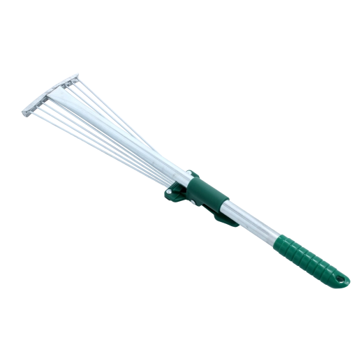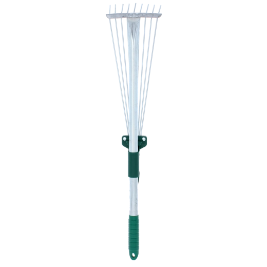 Praktikus és könnyű kerti gereblye teleszkópos nyéllel és állítható munkaszélességgel a lehullott levelek, fű és apró kerti hulladék egyszerű összegyűjtéséhez. Az 54–73 cm között állítható hossz és a legyező alakú fej révén az eszközt a helyhez és a feladathoz igazíthatja. Kompakt méret, alacsony tömeg és ergonomikus markolat biztosítják a kényelmes használatot kis felületeken, teraszokon és az ágyások között is.