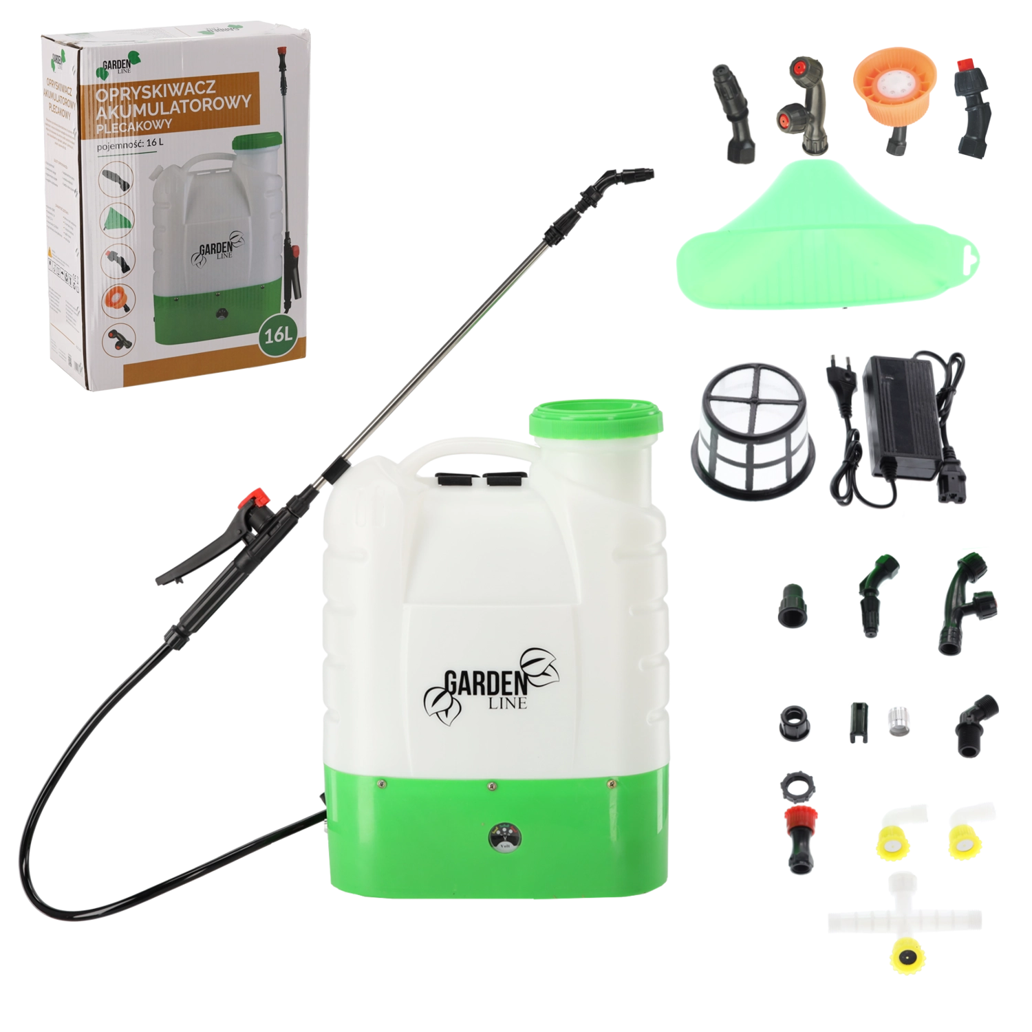 A 16 l-es, tartós HDPE tartályú akkumulátoros permetező időt és fáradságot takarít meg a növényápolás során. Az elektromos szivattyúval és a forgó nyomásszabályzóval finom ködöt vagy célzott sugarat érhet el folyamatos kézi pumpálás nélkül. Az ergonomikusan formázott tartály és az állítható vállpántok hosszabb munka közben is kényelmet biztosítanak.