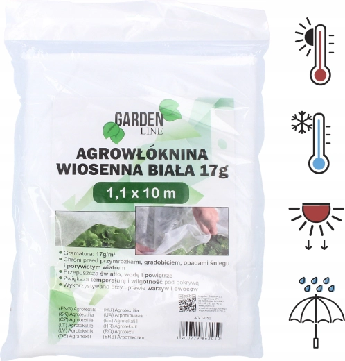 A könnyű, tavaszi agrotextil 1,1 × 10 m megvédi a fiatal növényeket a tavaszi fagyoktól, a széltől és a kártevőktől, miközben átengedi a fényt, a levegőt és a vizet az egészséges növekedéshez. A 17 g/m² felülettömegnek és a UV-stabilizációnak köszönhetően kedvező mikroklímát teremt és felgyorsítja a szezon kezdetét.