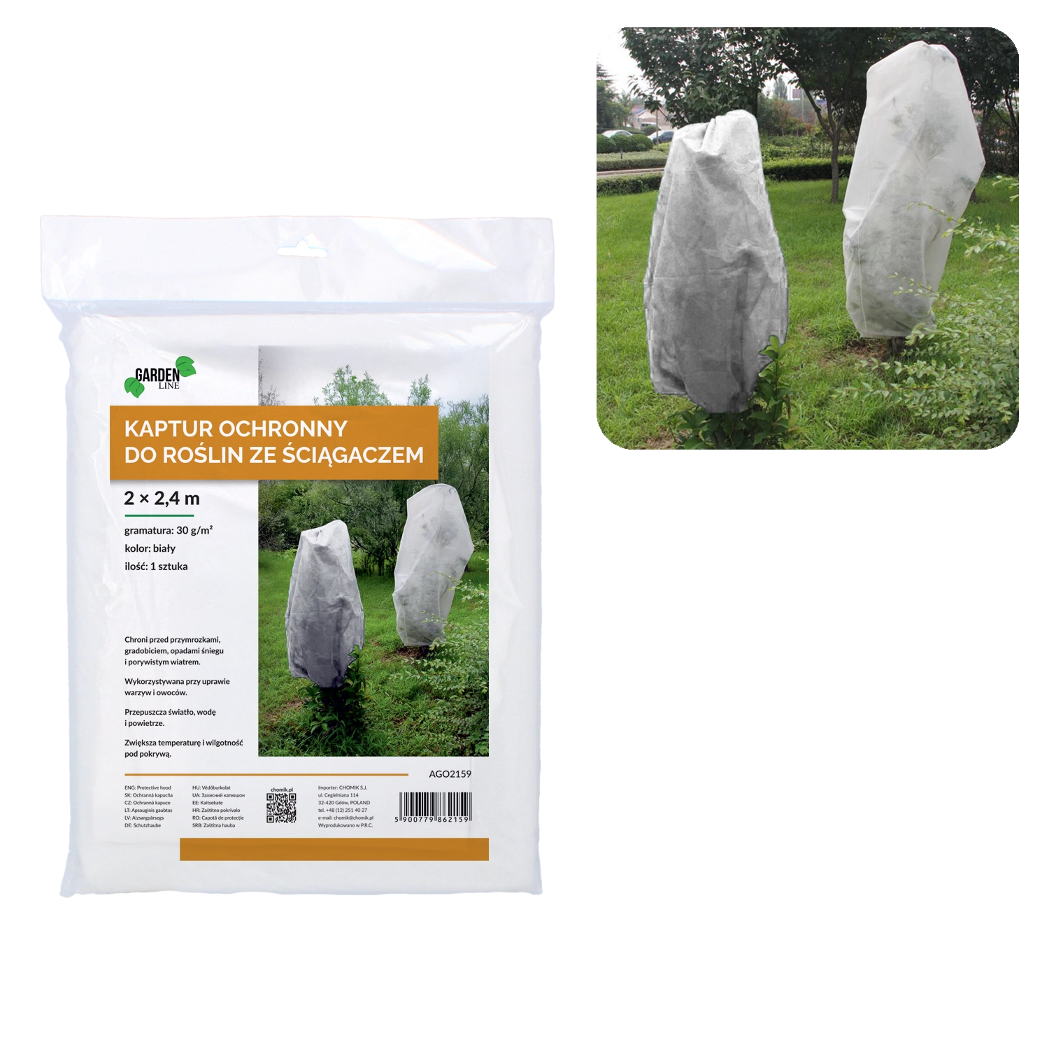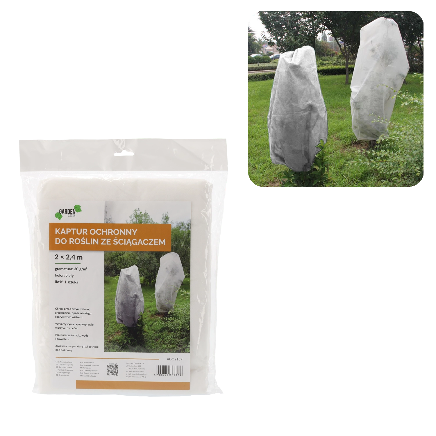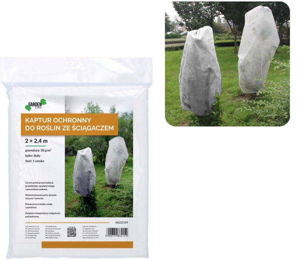 A 2 × 2,4 m-es méretnek köszönhetően a huzat a nagyobb növényeket is könnyedén lefedi. Az alsó rész praktikus húzózsinórral van ellátva, amely gyors rögzítést tesz lehetővé további eszközök nélkül. Az anyag könnyű, légáteresztő és fényáteresztő, így a növények nem füllednek be.