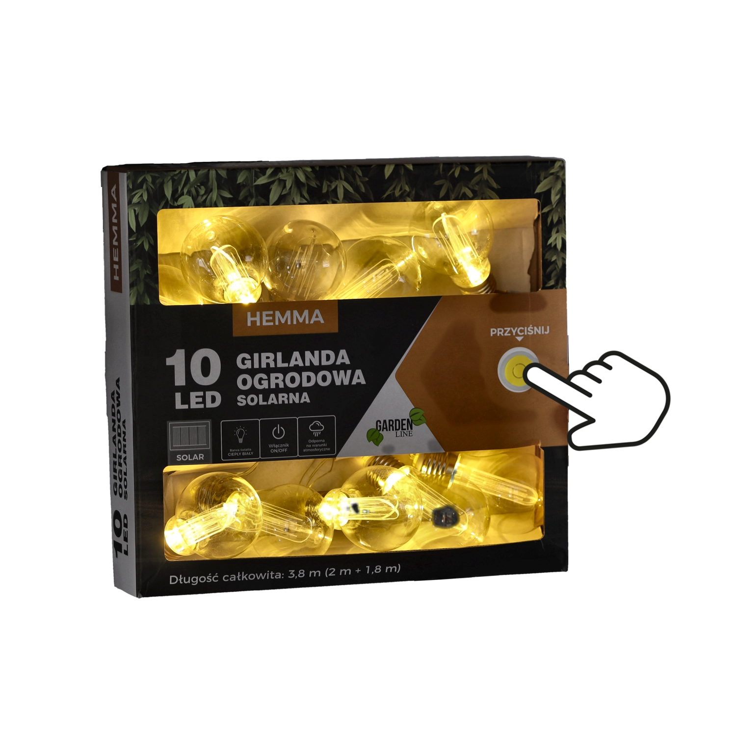Teremts hangulatos légkört a teraszon vagy erkélyen a 3,8 m hosszú napelemes fényfüzérrel. 10 meleg fehér fényű LED-et, napelemes tápellátást kábelek nélkül, IP44 védelemmel és két világítási módot – folyamatos fény vagy villogás – kínál. Ideális kültéri ücsörgéshez, bulikhoz és mindennapi dekorációhoz.