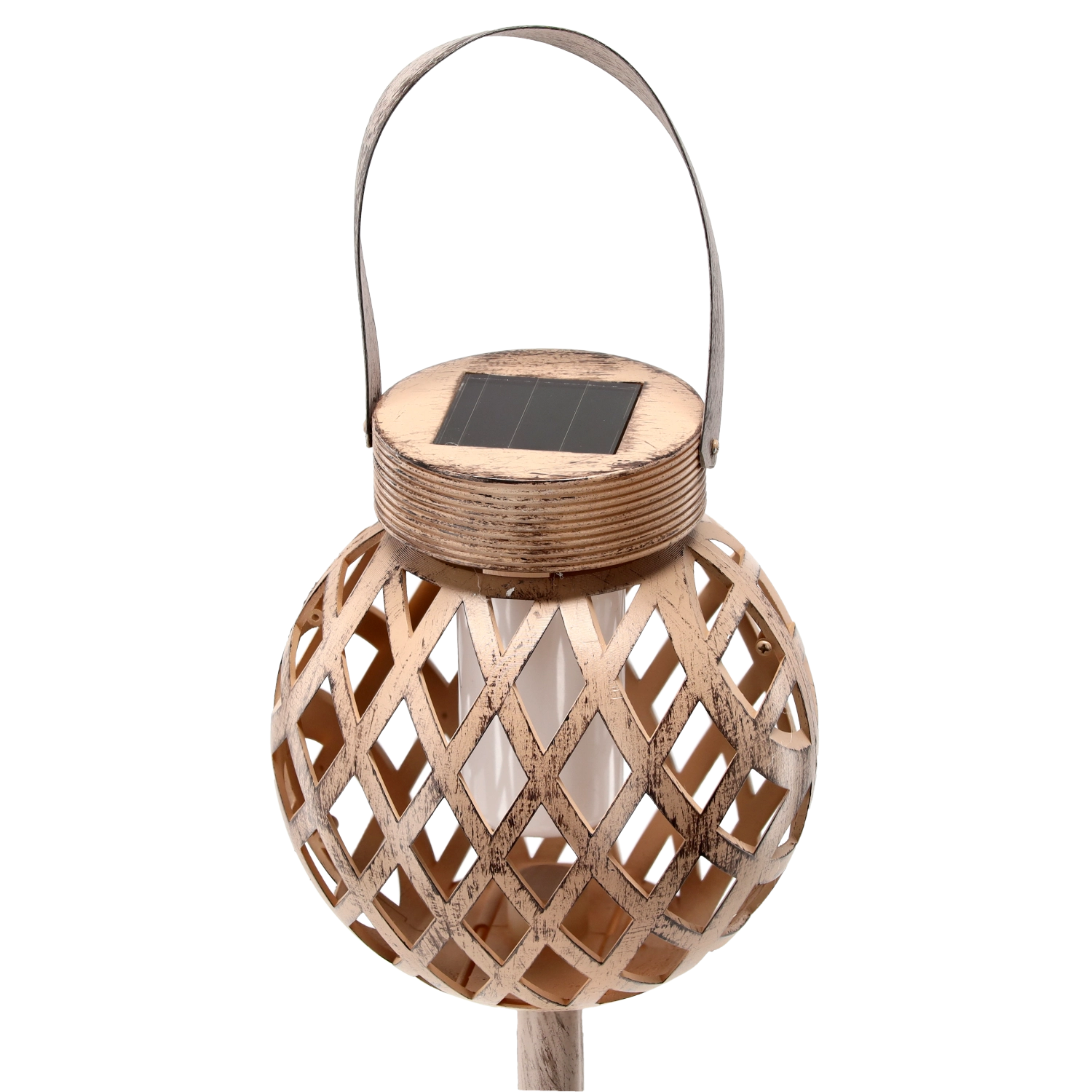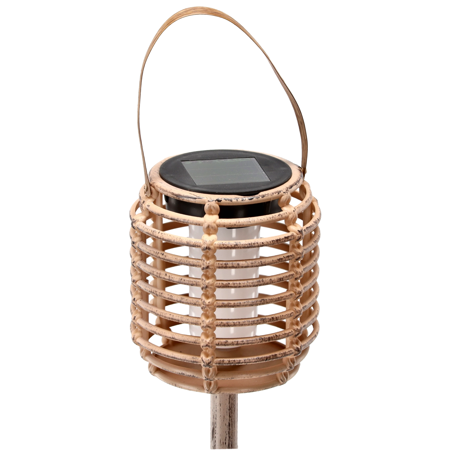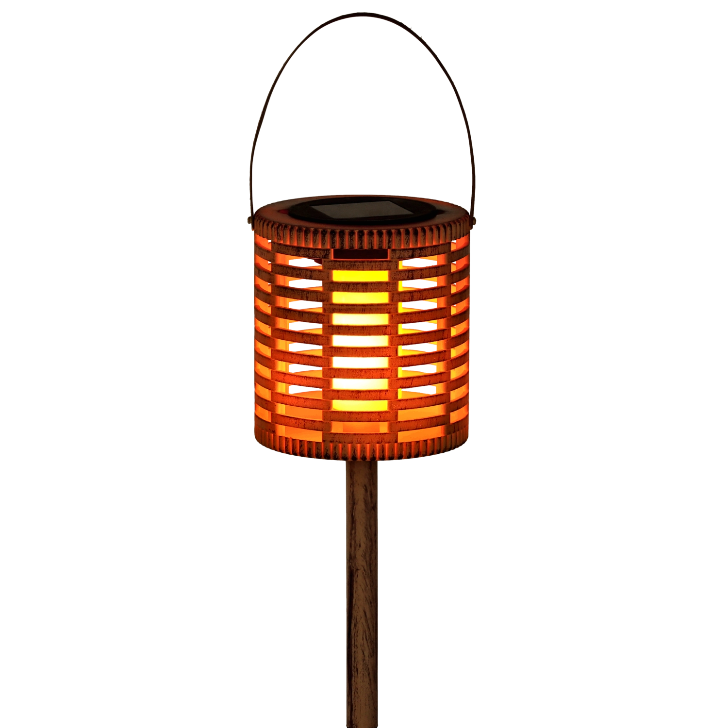 Stílusos, 35,5 cm magas szolár lámpás, amely meghitt hangulatot teremt a kertben. A beépített napelemes panelnek köszönhetően nappal töltődik, este pedig automatikusan meleg fehér fénnyel és lánghatással világít. Időjárásálló (IP44), földbe szúrható, és ideális járdák, kocsibeállók, teraszok és verandák mentén.